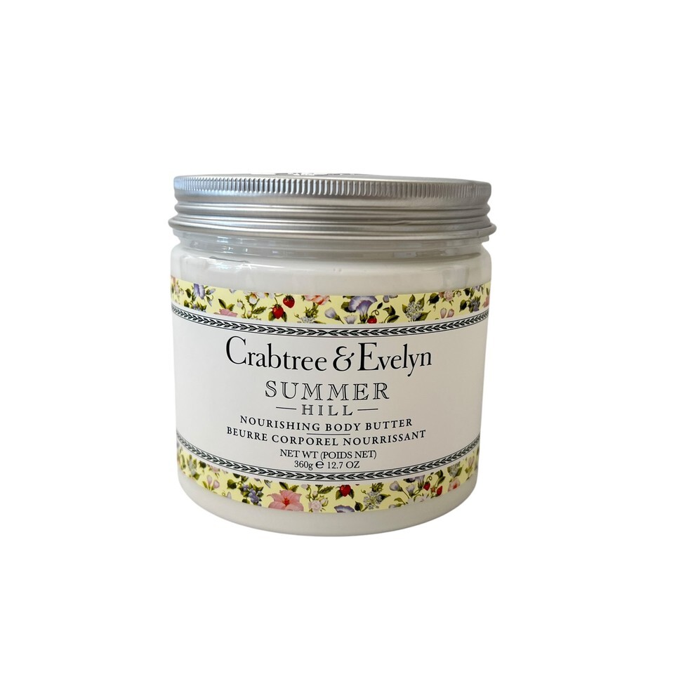 Indulge your skin in luxurious hydration with Crabtree Evelyn Summer Hill Nourishing Body Butter. This rich, velvety formula is designed to deeply moisturize and soften, leaving your skin feeling smooth, supple, and delicately scented with the essence of a sun-kissed summer meadow.