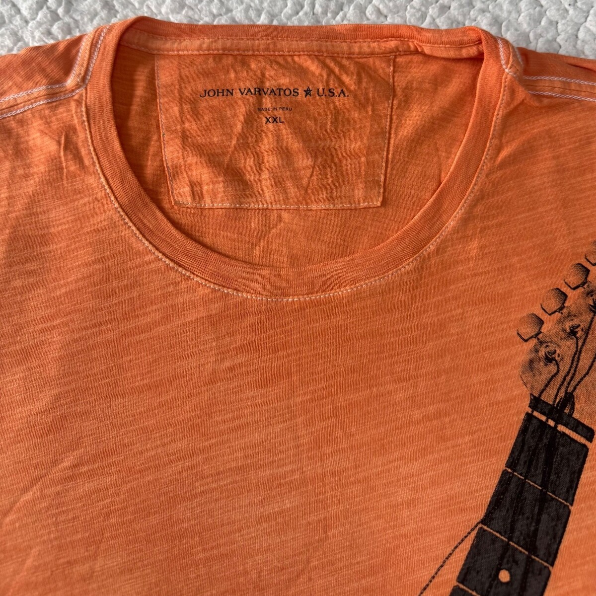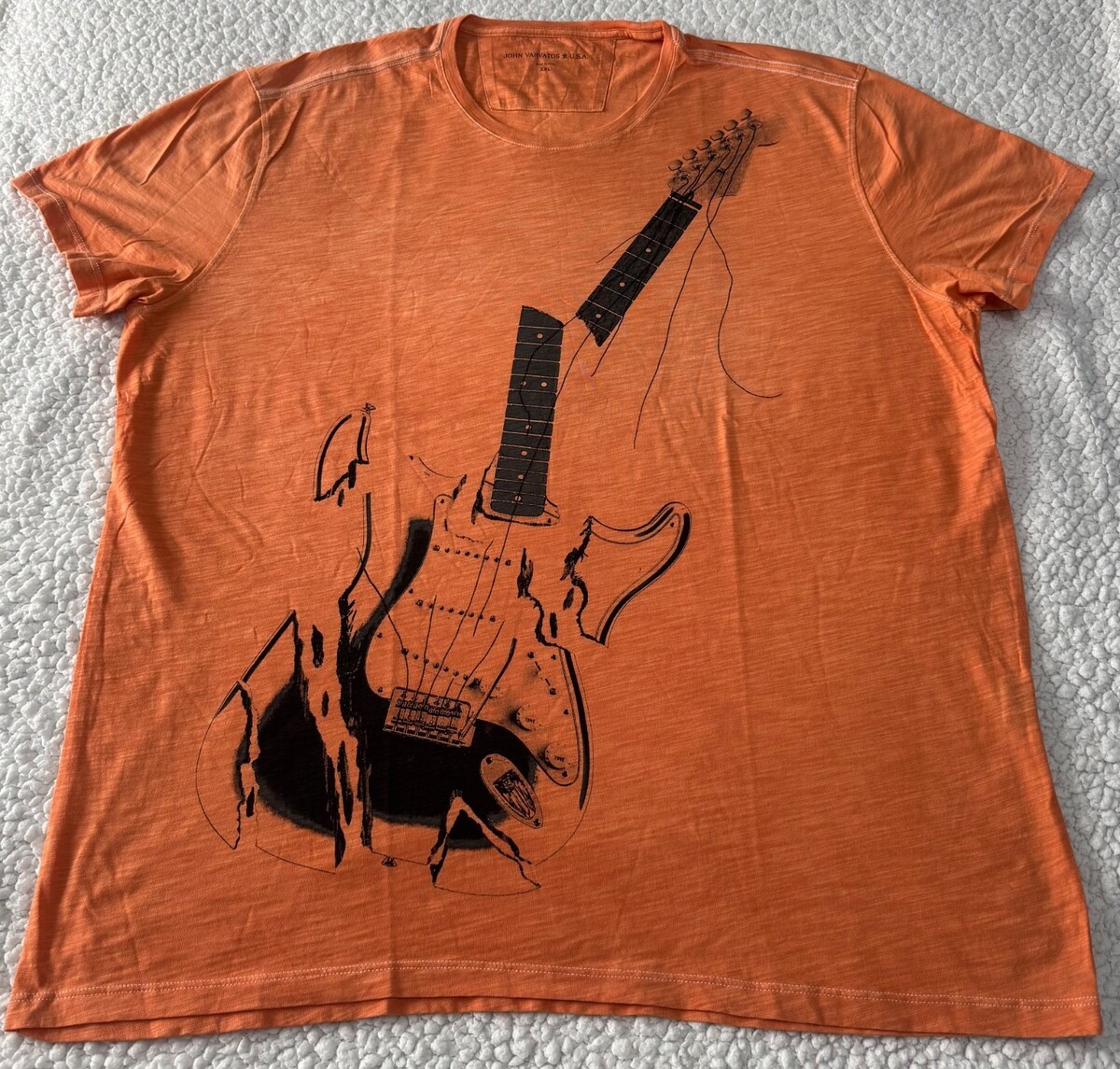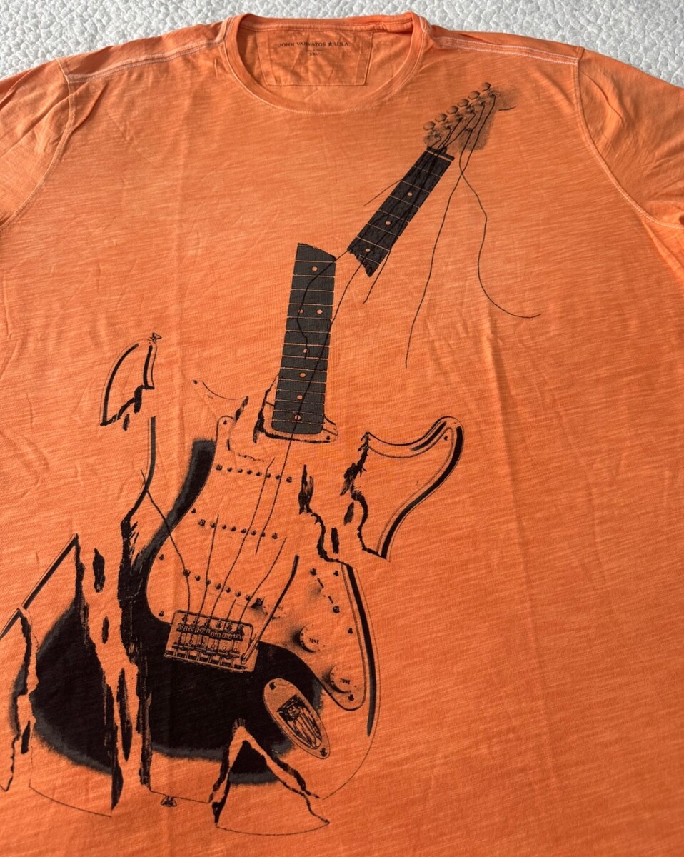 John Varvatos Star USA Men's Stone Wash Orange Broken Guitar Graphic T-Shirt XXL