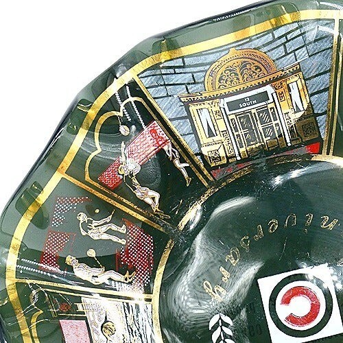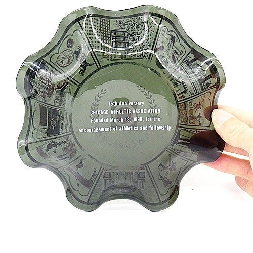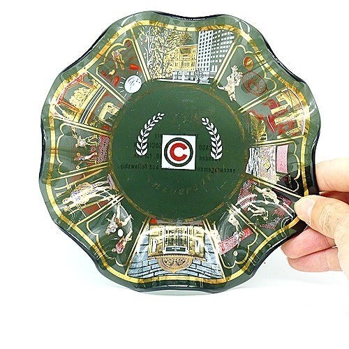 This smoky glass plate with deep ridges and gold painted accents is a cool piece of Chicago history for any Chicago Cubs sports fan as well as anyone interested in Chicago's rich past.