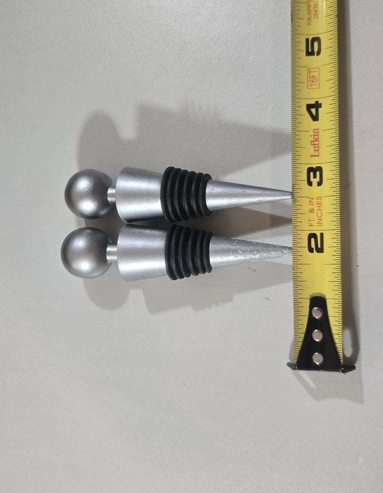 Set Of 2 Stainless Steel Wine Bottle Stoppers With Ball Bearing Tops.