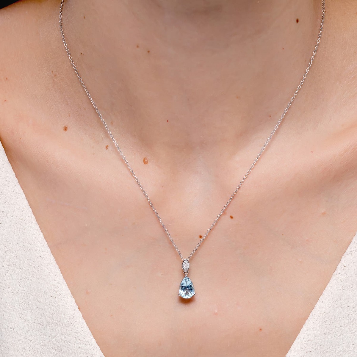 The pear-shaped aquamarine has an elegant, bold and dramatic look. It's a stunning fusion of the marquise cut and the classic round cut. Perfect for adding a touch of sophistication to your outfit.