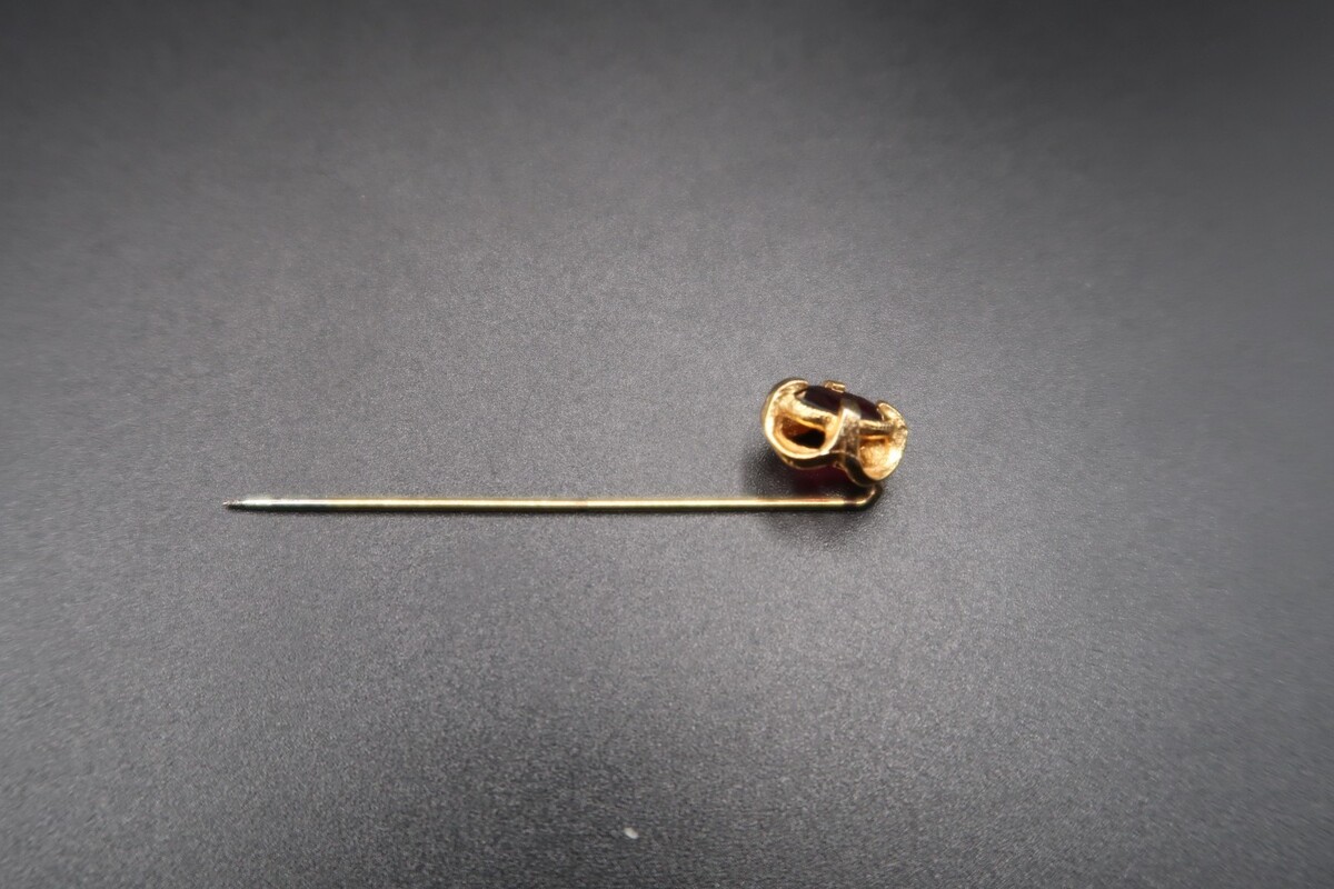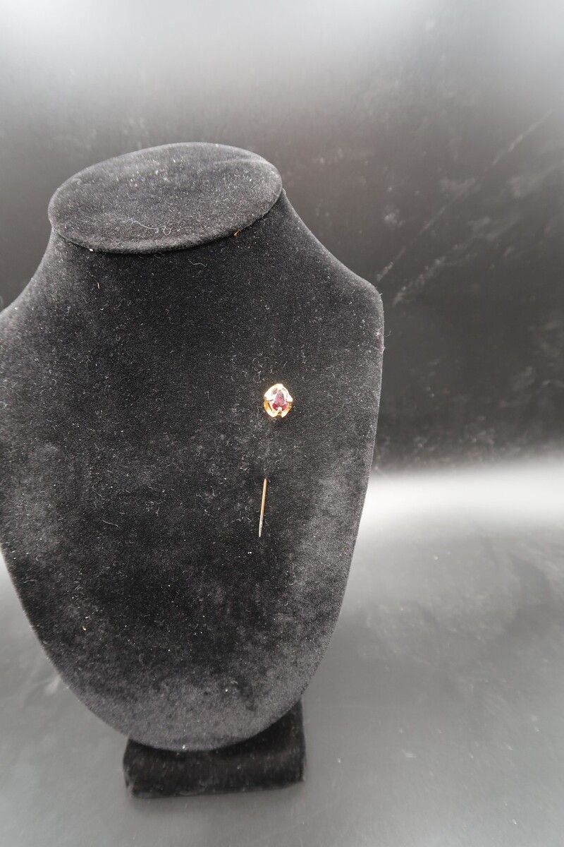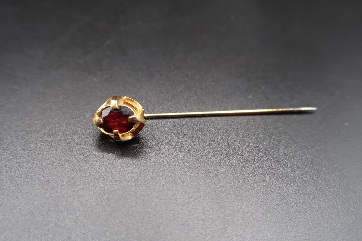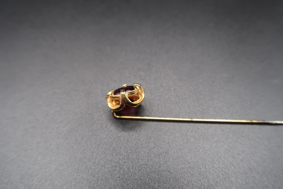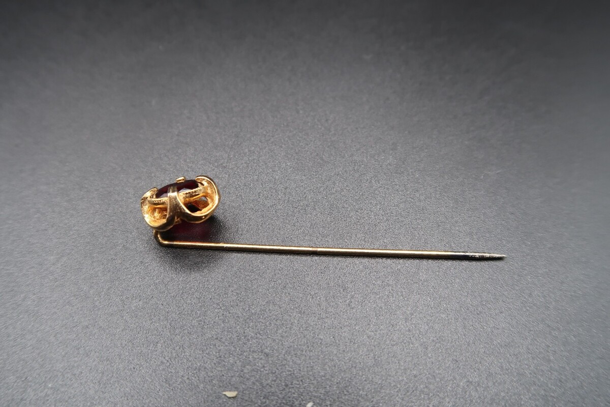 Vtg Gold Tone & Garnet Color Prong Set Cabachon Stick Pin No Stop Pretty