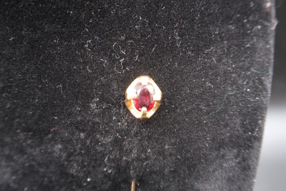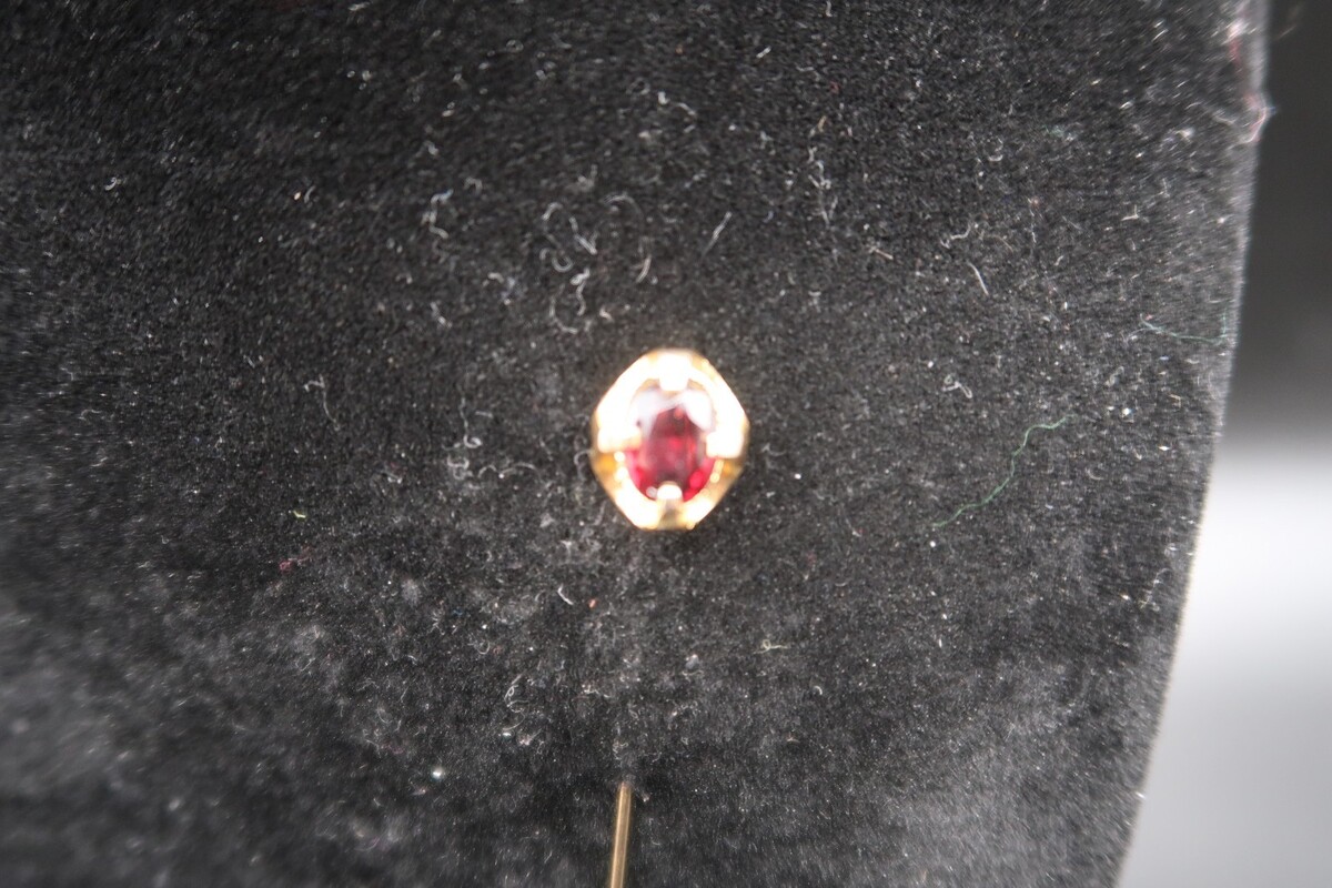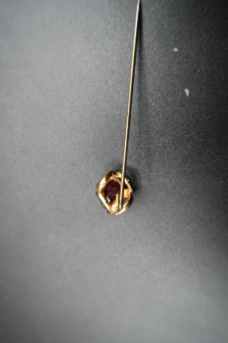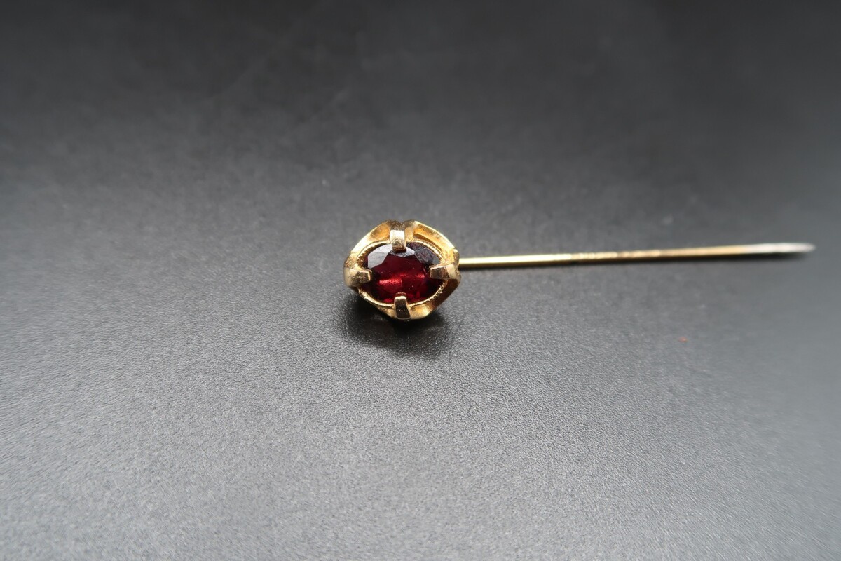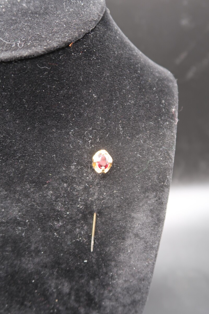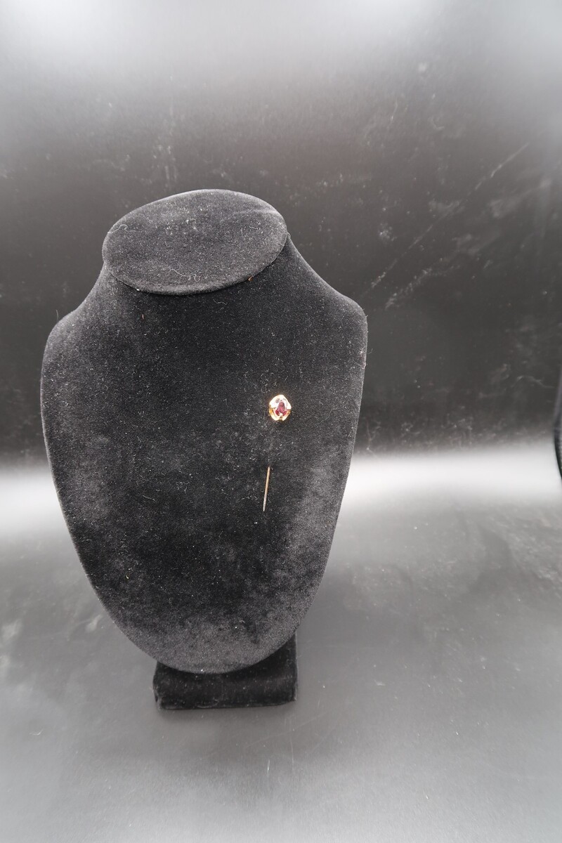 Vtg Gold Tone & Garnet Color Prong Set Cabachon Stick Pin No Stop Pretty