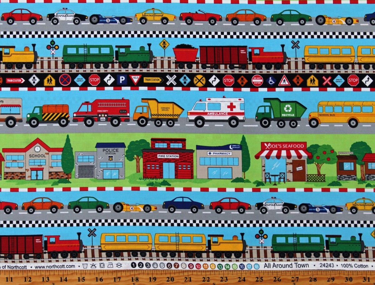 Cotton All Around Town Stripe Cars Traffic and similar items