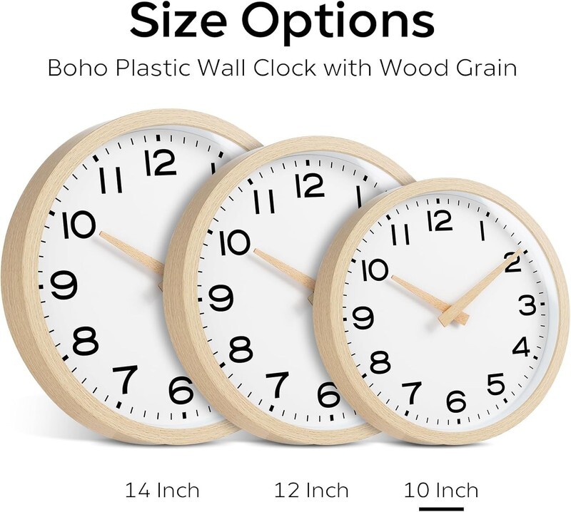 10 Inch Wall Clocks Battery Operated Non Ticking Silent Modern Clock Wood Grain