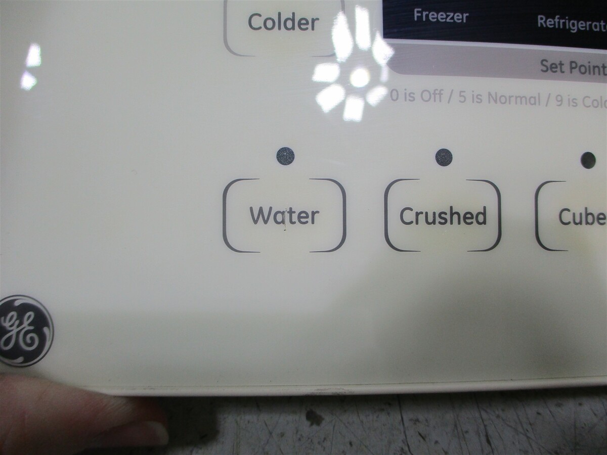 GE REFRIGERATOR DISPENSER CONTROL BOARD YELLOWED/CRACKED BUTTONS # WR55X23213