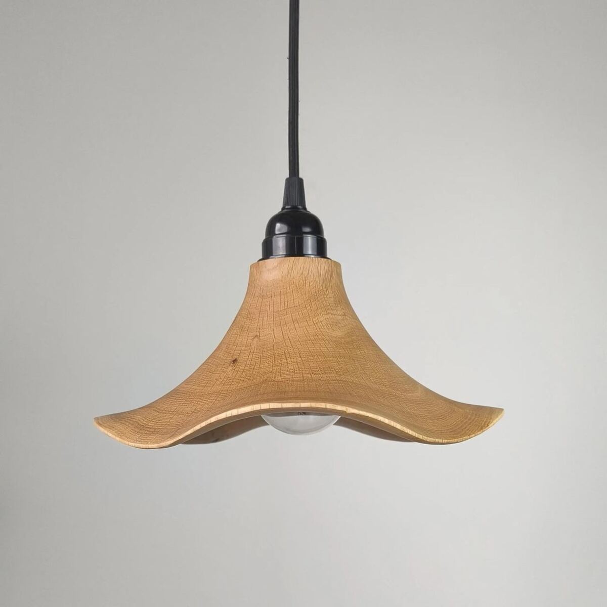 This oak pendant light set boasts a unique, original design, a very thin frame, and a graceful wavy edge. It's handcrafted and finished with professional wood oil and wax.