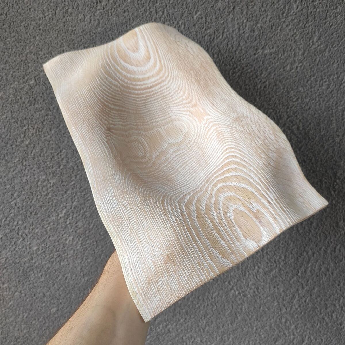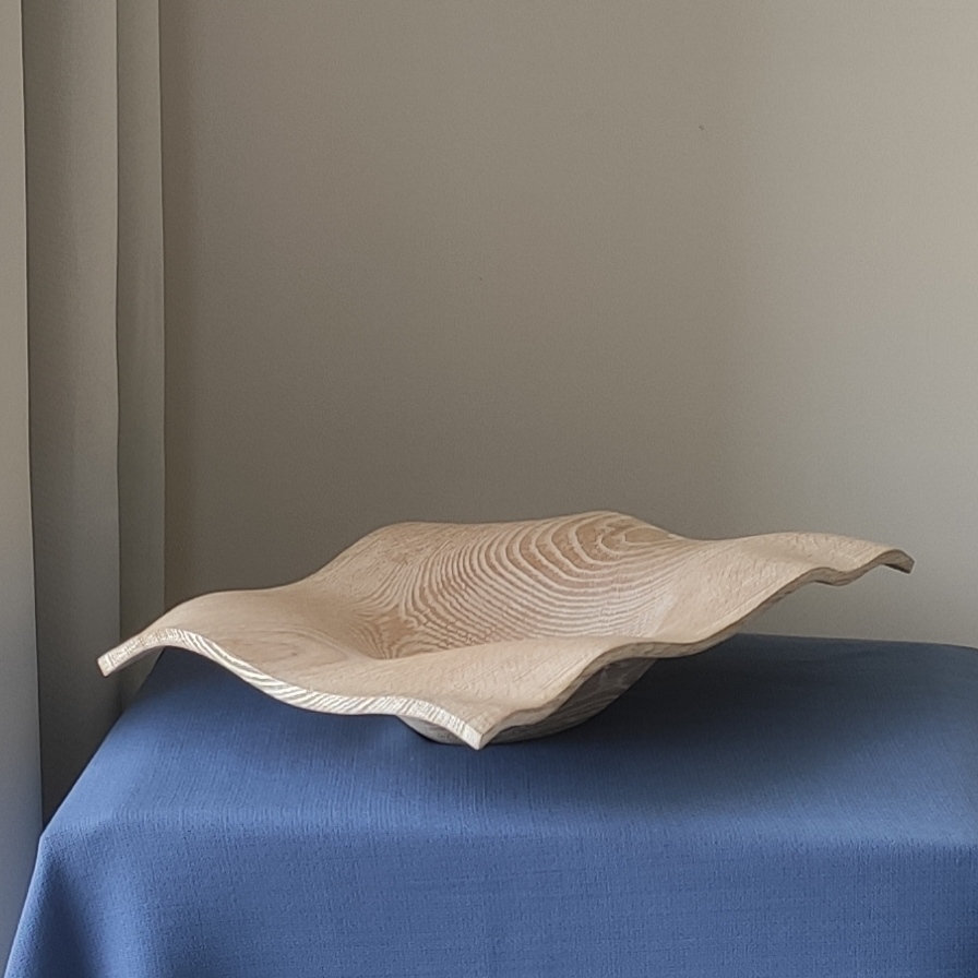 A unique, handcrafted bowl. I crafted this bowl from a solid piece of American oak. Its unique design and accentuated grain make it an exquisite decorative piece, combining practicality with the natural beauty of wood and a unique design.