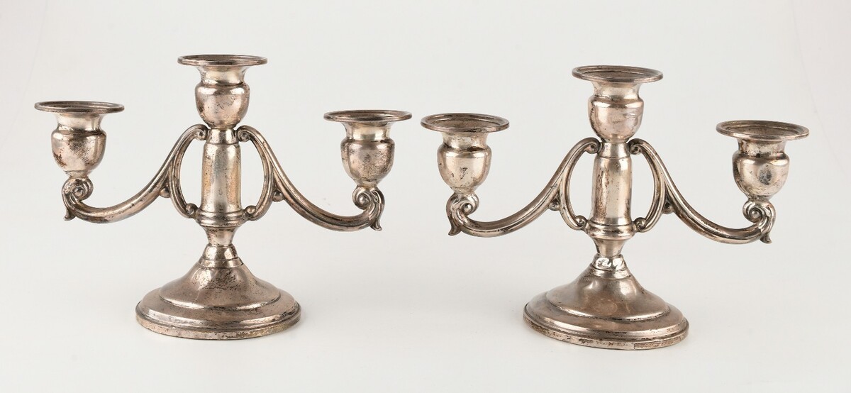 *SET OF 2 STERLING SILVER 3 LIGHT CANDLE HOLDER RAINFORCED WITH CEMENT