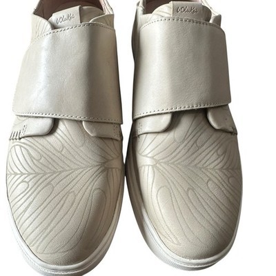 OluKai Pehuea Loupili Women Size 11 Beige Leather Monstera Leaf Casual Sneakers