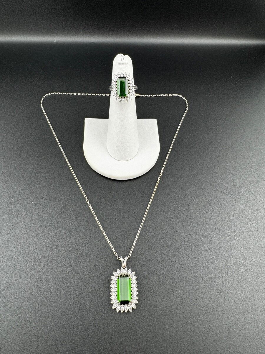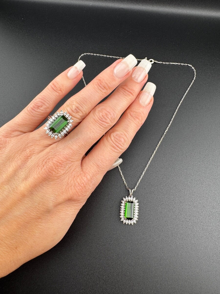 Natural Green tourmaline and Dia Ring & Pendant SET, 6.77ctw, 18k, 11g, $12,100k
