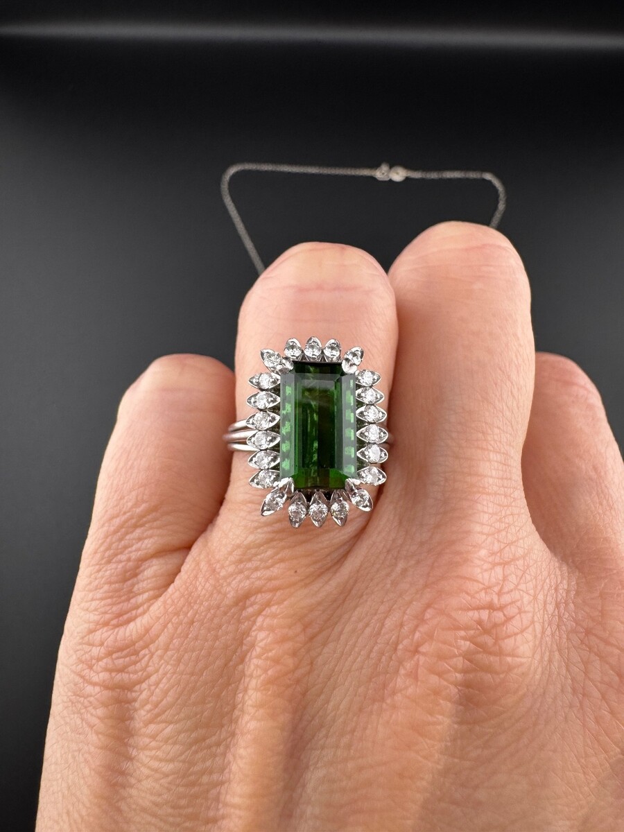 Natural Green tourmaline and Dia Ring & and 49 similar items