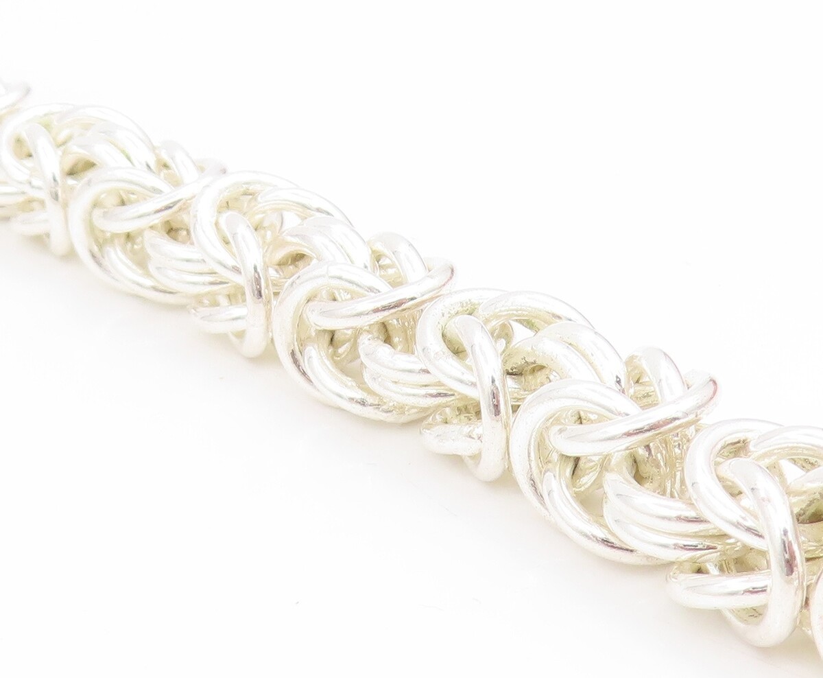 925 Sterling Silver Vintage Necklace Intricate Woven Solid Byzantine Link NE4826