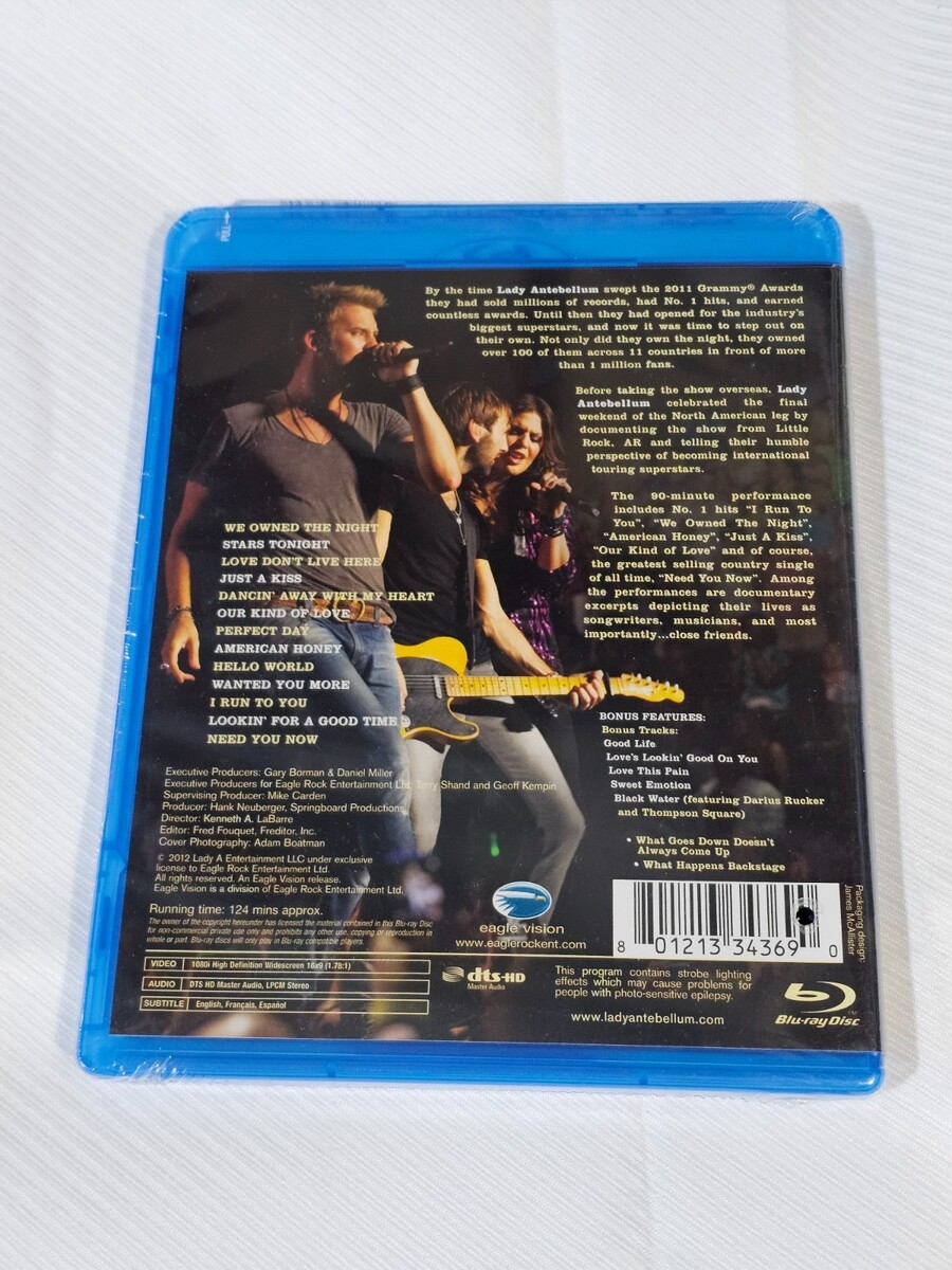 This Blu-ray includes bonus content such as behind-the-scenes footage, bonus tracks, and exclusive moments from the tour. Disc appears brand new and factory sealed (see photos for exact condition). Ships securely and carefully packaged. Perfect for collectors or anyone who wants to relive one of Lady Antebellum?s most iconic tours in brilliant HD.