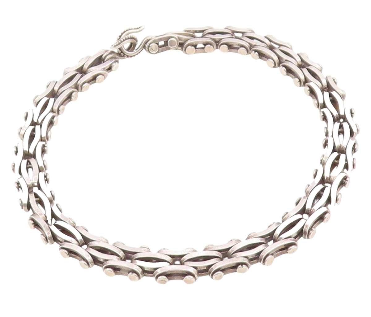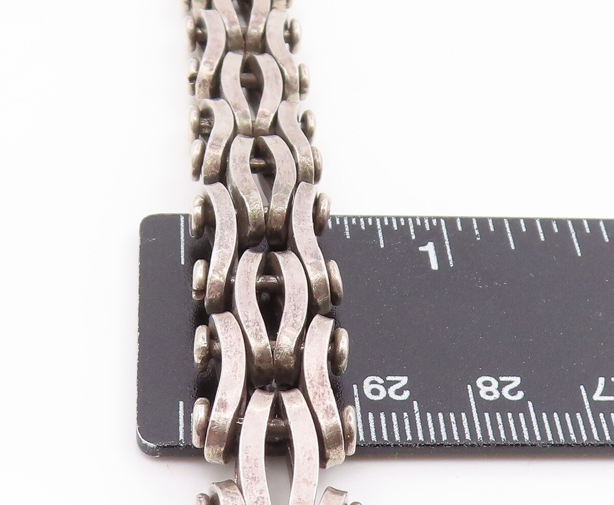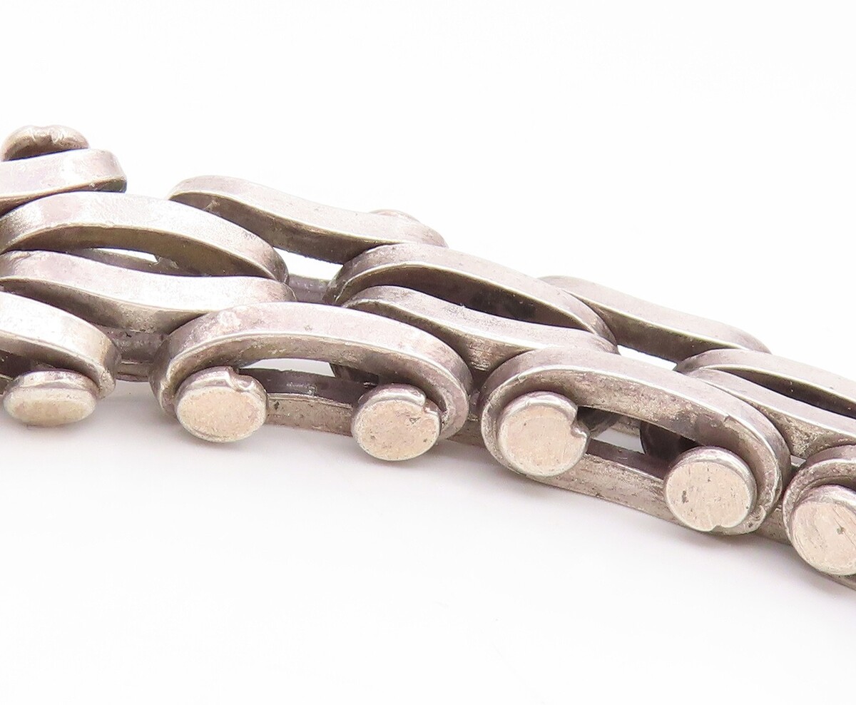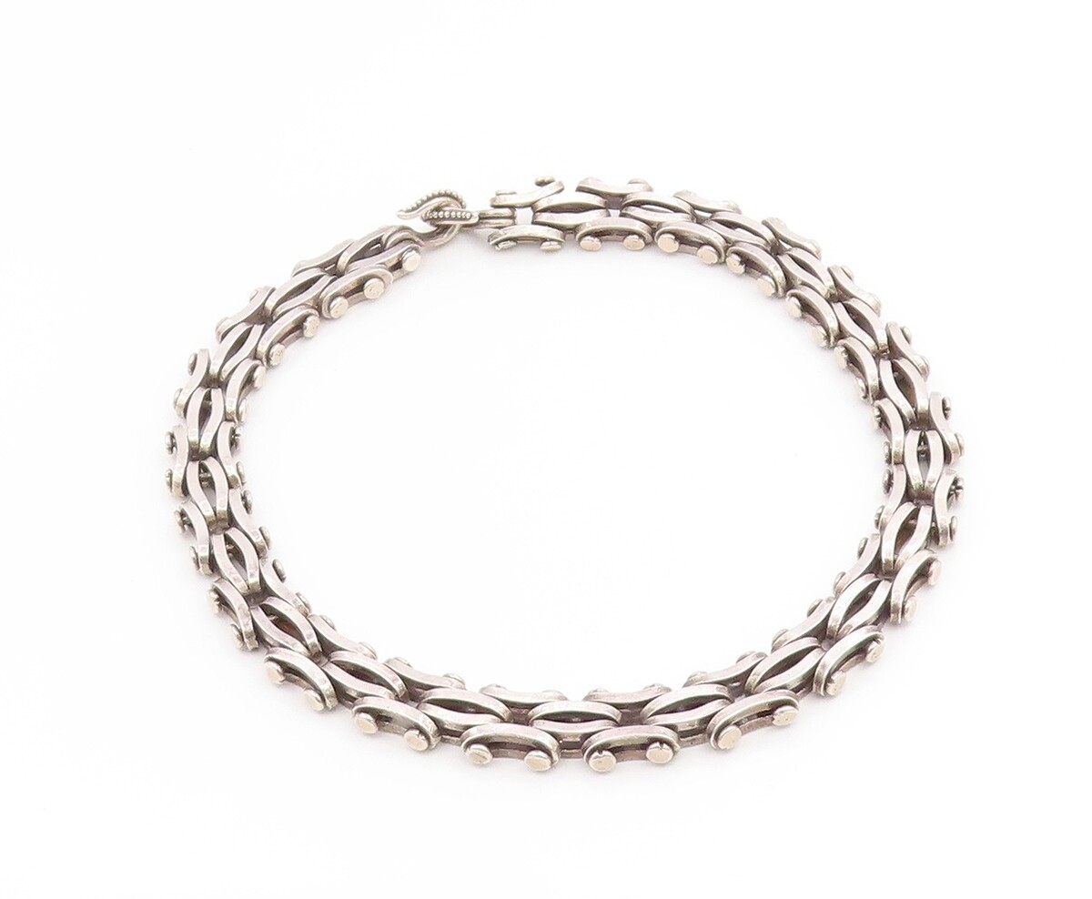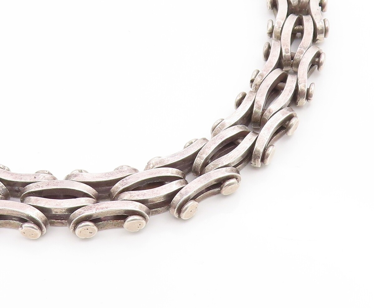 925 Sterling Silver Vintage Necklace Solid Modernist Biker Choker Heavy NE4819