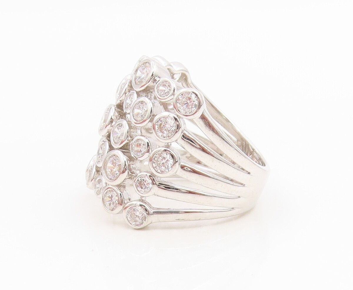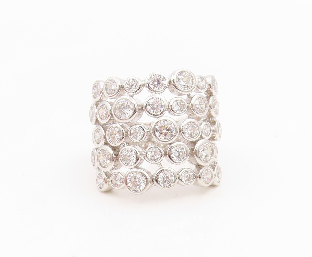925 Sterling Silver Vintage Ring JACMEL Bezel Set CZ Multi Row Sz 6.5 RG35010