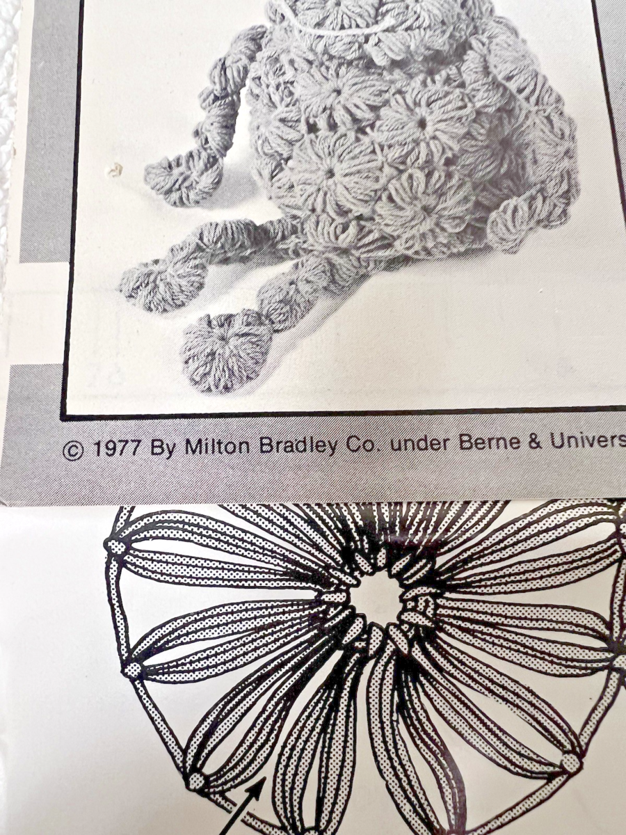 1977 Knit a Round Frog Kit Original w Yarn Box Instructions In good shape someone has started but it's all here I do think you will need fresh glue...