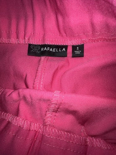 Elevate your wardrobe with these stylish Rafaella women's capri pants in a beautiful carmine rose color. Designed with two front pockets, these pants are both functional and fashionable. The stretchy material ensures a comfortable and flattering fit, while the capri length is perfect for warmer weather. These pants are perfect for any occasion, from casual outings to dressier events. Add them to your closet today and take your outfit game to the next level! Has 2 front pockets.
