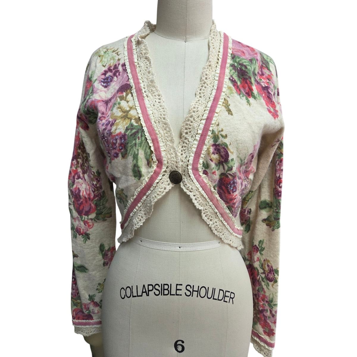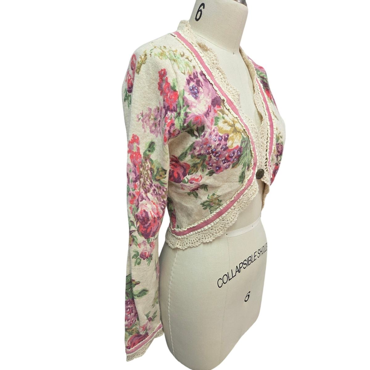 VTG 90s NWT Marisa Christina Floral Cropped Bolero Angora Blend Coquette S