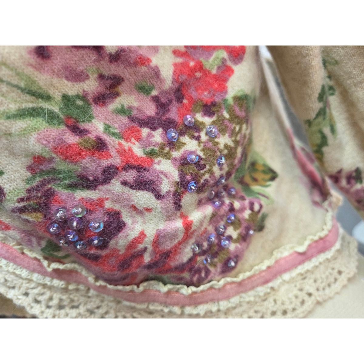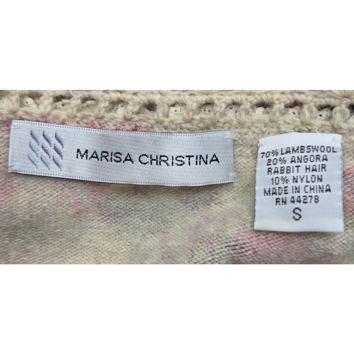 By Marisa Christina, a label known in the late 1990s?early 2000s for romantic knitwear featuring florals, lace trims, and soft luxury fibers. Fabric design reflects early-2000s romantic revival aesthetics.