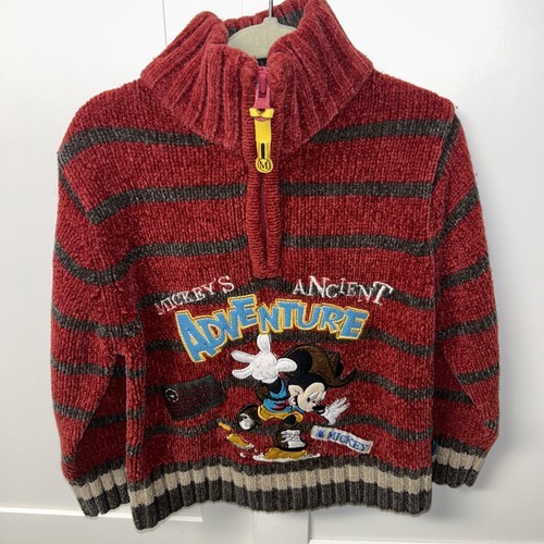 Mickey’s Ancient Adventure Disney Boys Pullover Quarter Zip Size 2-3T Red Stripe