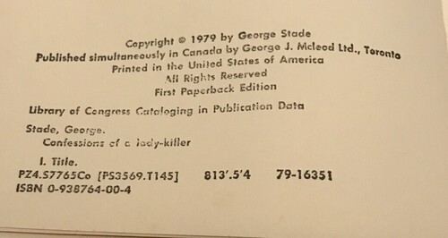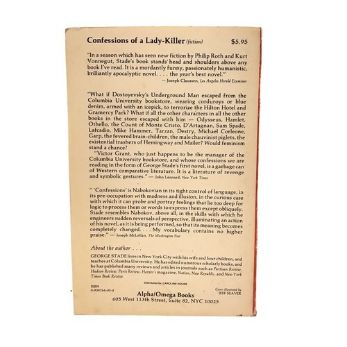 Confessions of a Lady-Killer George Stade 1979 PB Alpha/Omega Books.