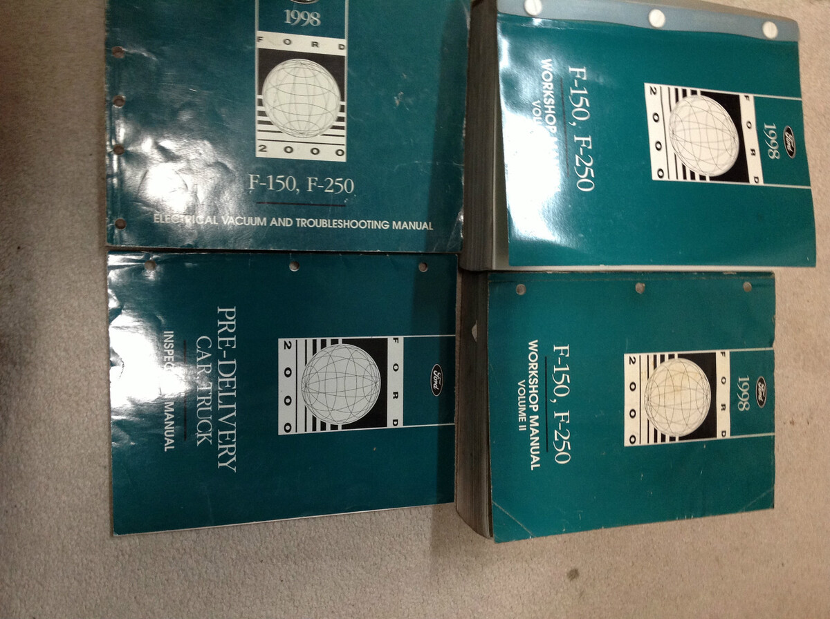1998 Ford F-150/250 FACTORY service manual 2 volume set,Pre Delivery Inspection Manual, and the Electrical Wiring Diagrams Manual.