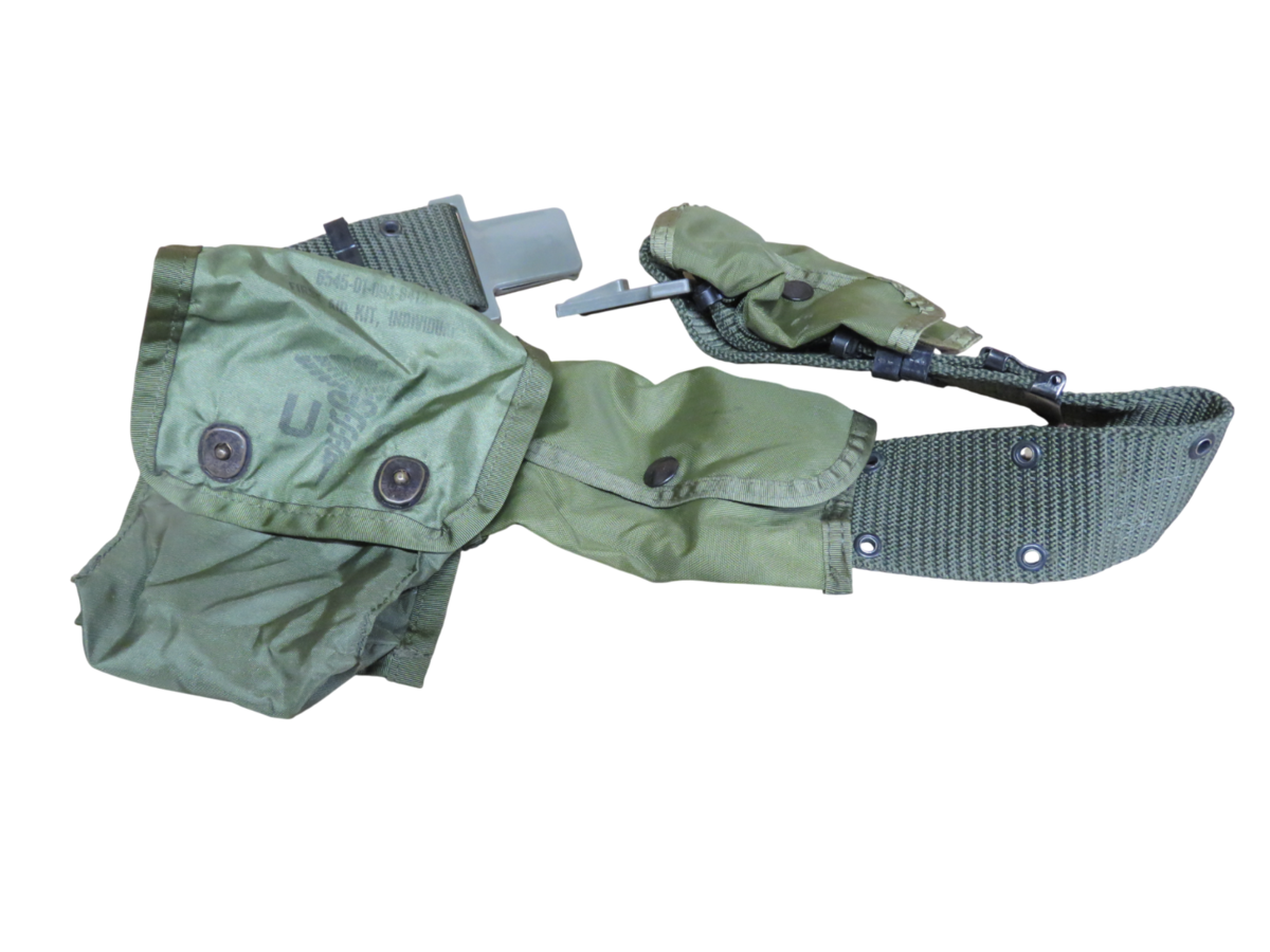 Vintage US Army Military Belt w/ First Aid Kit Pouch & Other Pouches Vietnam Era