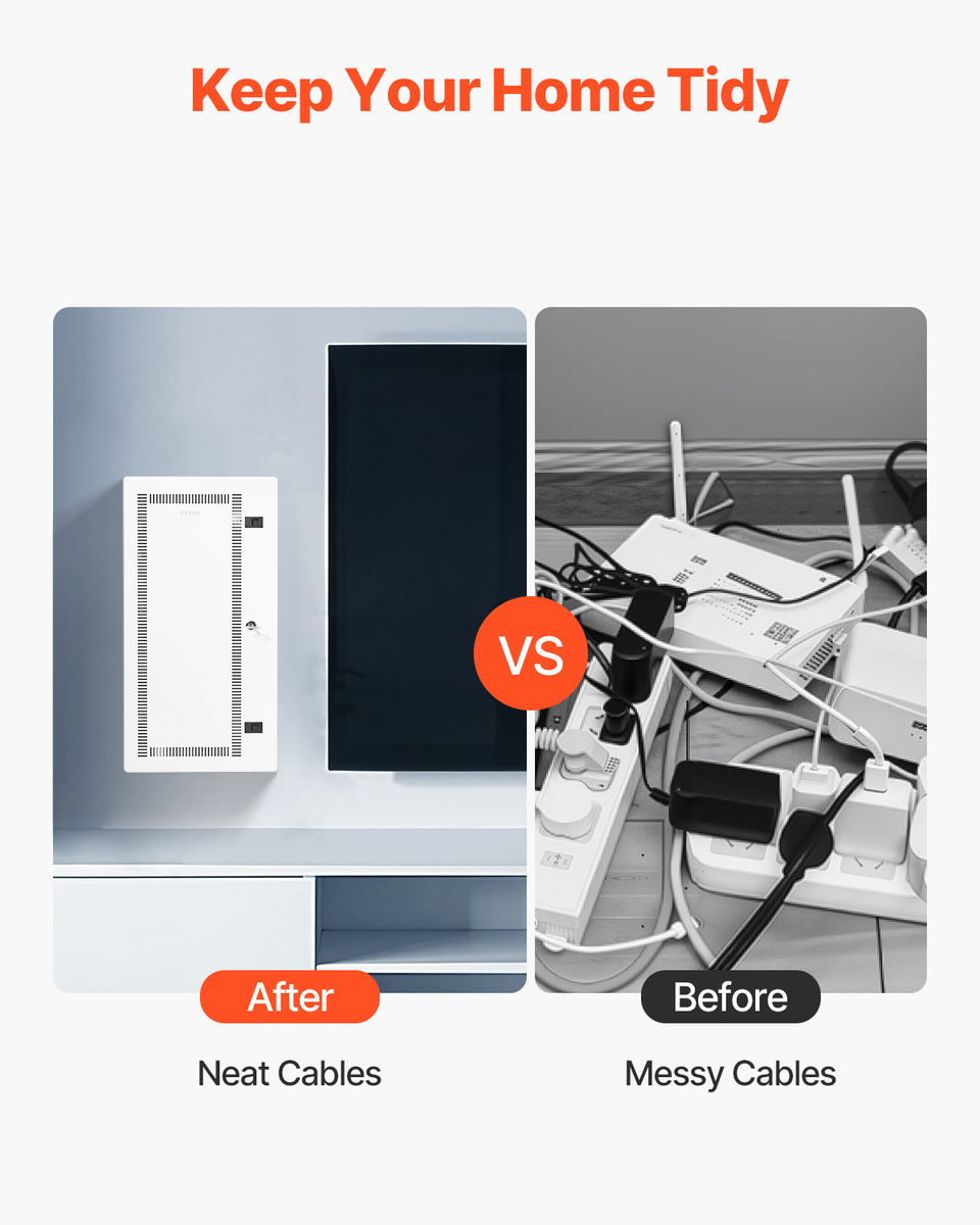 Easily Fits Various Wall Types: This cable management box is ideally sized to fit 16-inch stud spacing, whether your home is new construction or a renovation. It installs seamlessly, allowing you to effortlessly achieve a clean, organized layout and efficient storage, no matter the wall type