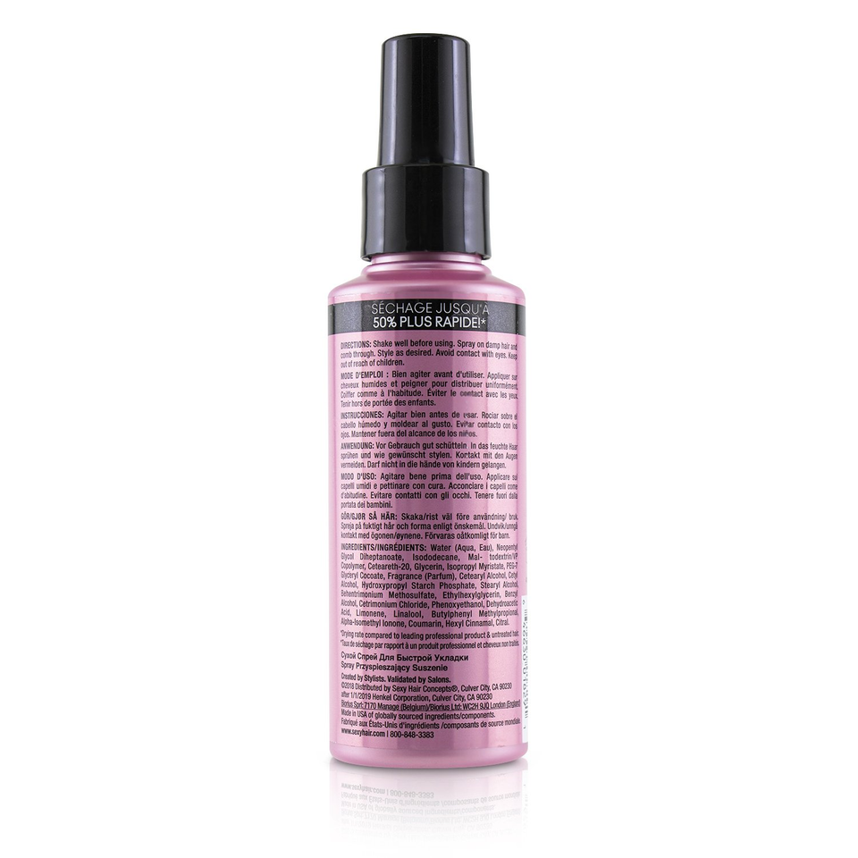 Hot sexy hair flash me quickie blow dry spray offers up to 50 percent quicker drying time.