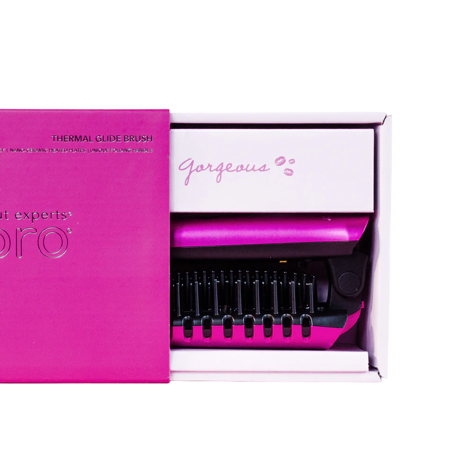 Combining the superior structure of a paddle brush with the powerful heat of a flat iron, this game-changing tool effortlessly tames and smooths dry hair in no time. It's your ultimate partner for second-day styling. Unlock the potential of a hair straightener and brush combo, all in one convenient device. Our Thermal Glide Brush uses Thermatru Technology which seals hair cuticles and distributes heat for even heating, a folding handle for easy storage, a 9ft swivel cord, and a 1-hour auto shut-off. Simply run it slowly through dry hair from roots to tips for sleek, beautiful strands.
