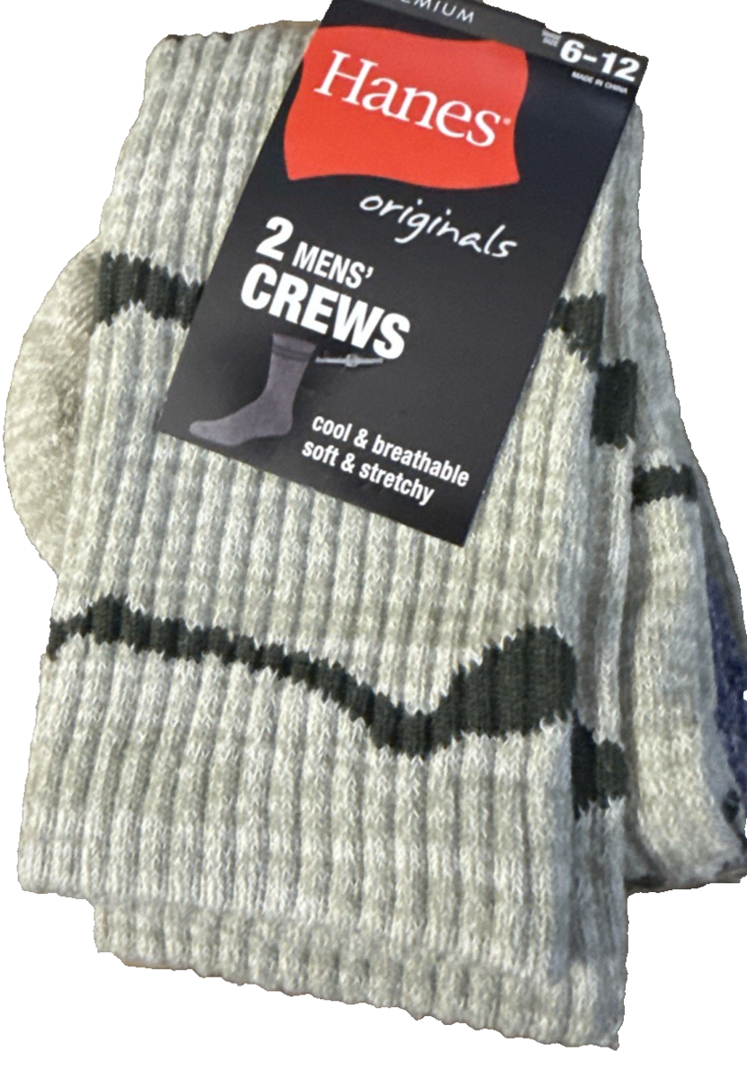 Hanes Men’s Crew Socks 1pk of 2pr Size 6-12-Brand New-SHIPS N 24 HOURS