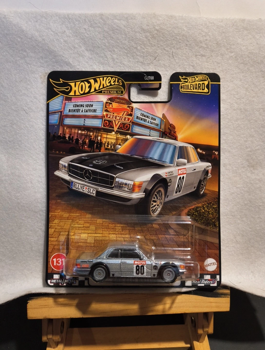 The 2025 Hot Wheels Premium Boulevard #131 '80 Mercedes-Benz 500 SLC Rallye is a diecast toy car in 1:64 scale, featuring real riders and a metal base. This collectible vehicle is part of the Boulevard series by Hot Wheels, making it a desirable addition for both boys and girls ages 3 and up. The silver color and iconic Mercedes-Benz design add to its appeal, while the unopened box ensures its pristine condition for display or play. Perfect for toy car enthusiasts and collectors, this model stays true to the classic 1980 Mercedes-Benz 500 SLC Rallye.