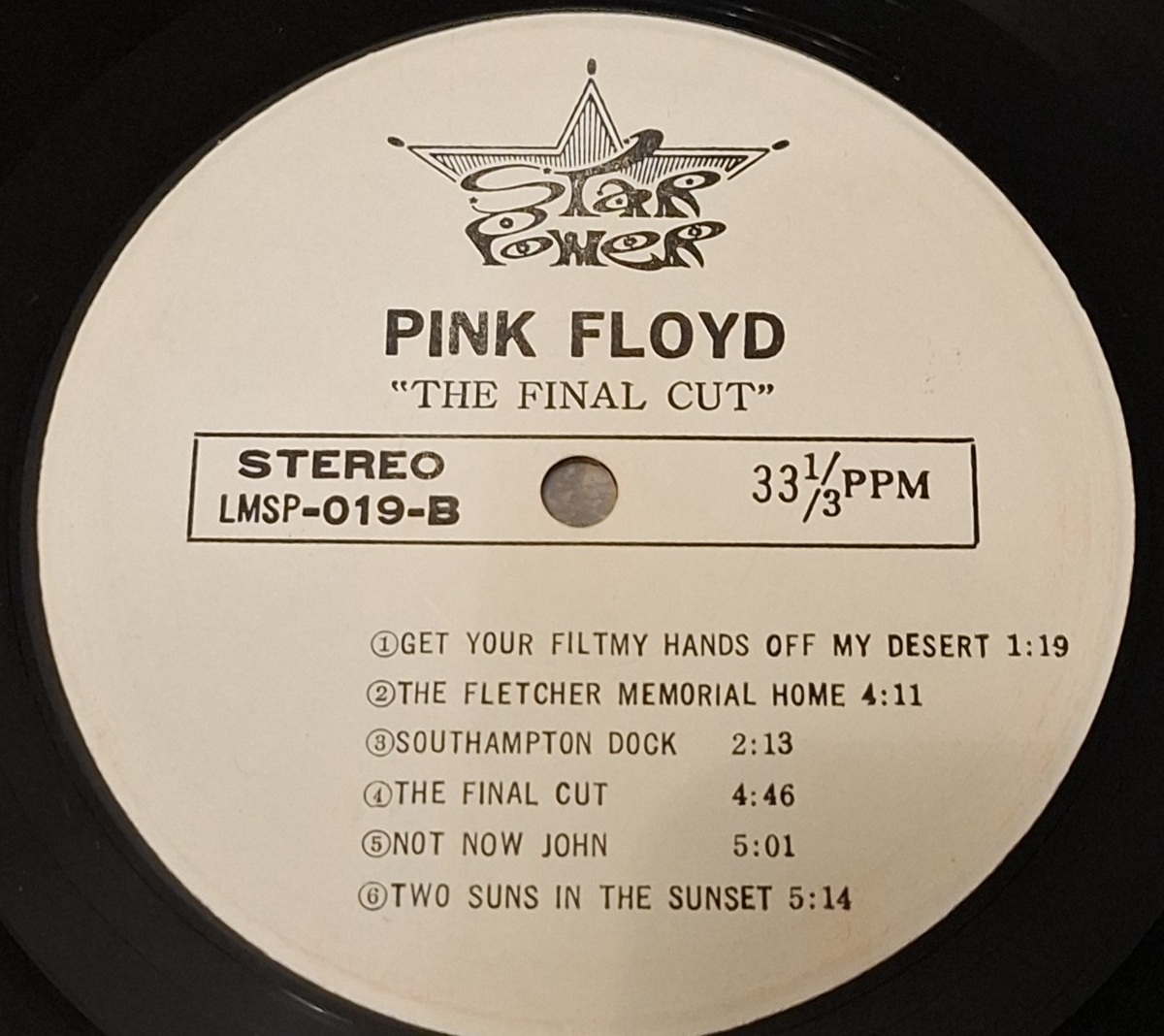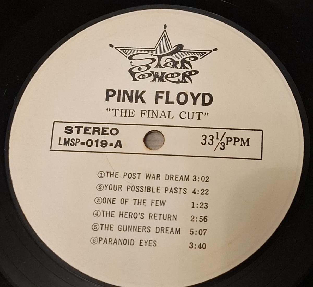 Rare Taiwan pressing of Pink Floyd ? The Final Cut with BF / Best Fortune (Taipei, Taiwan) sleeve marking JKA-2115 and Star Power labels (LMSP-019 A/B). Great collectible Taiwan issue.