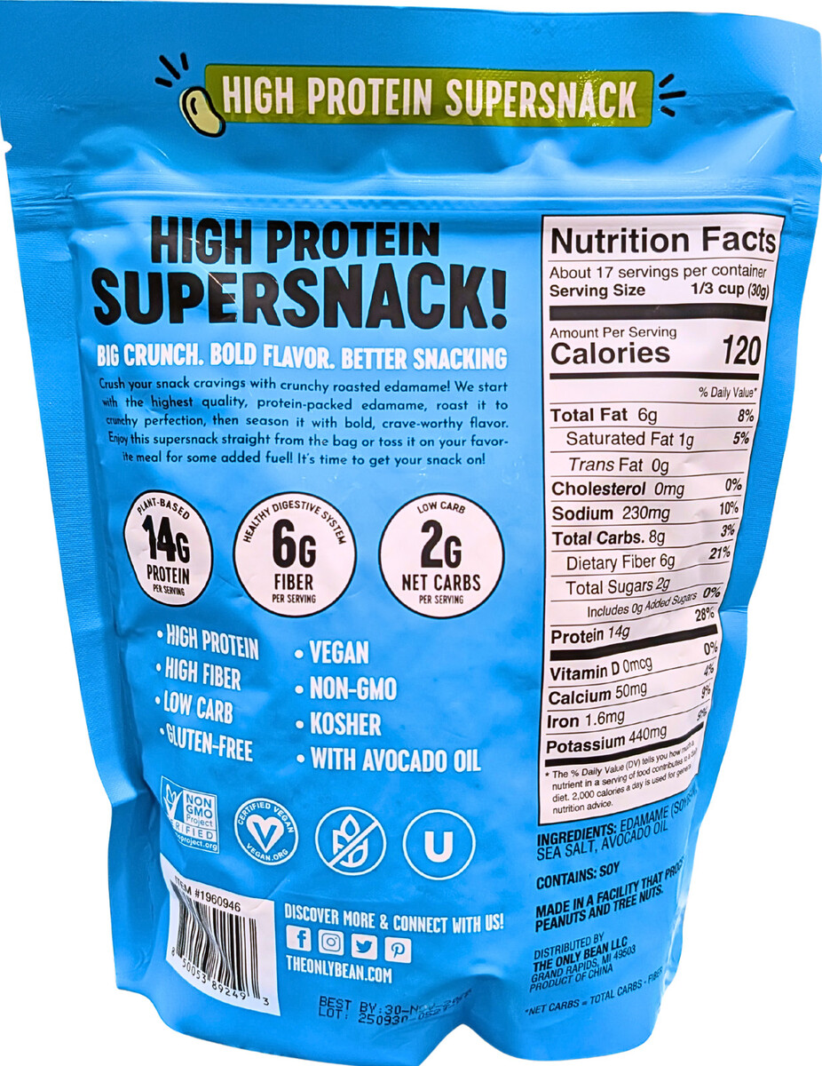 The Only Bean Crunchy Roasted Edamame Sea Salt 18 Oz EXP 11/2026