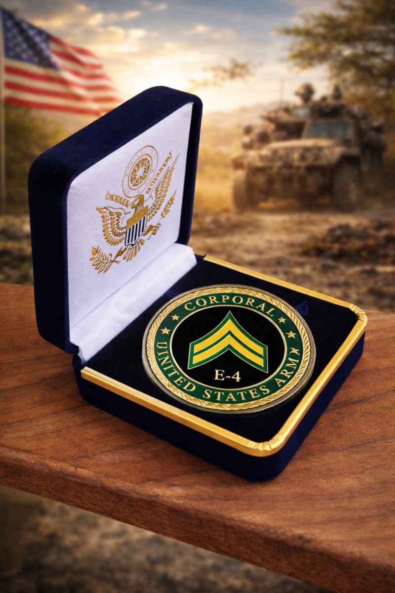 UNITED STATES ARMY - Rank CORPORAL E-4 Challenge Coin with Case ·FAST SHIPPING·