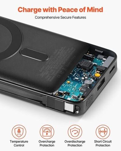 Made for iPhone 12/13/14/15/16 series with magnetic wireless charging, and the rest of your devices? No worries, USB, Type-C, and the built-in cable wireless power bank can be suited for.