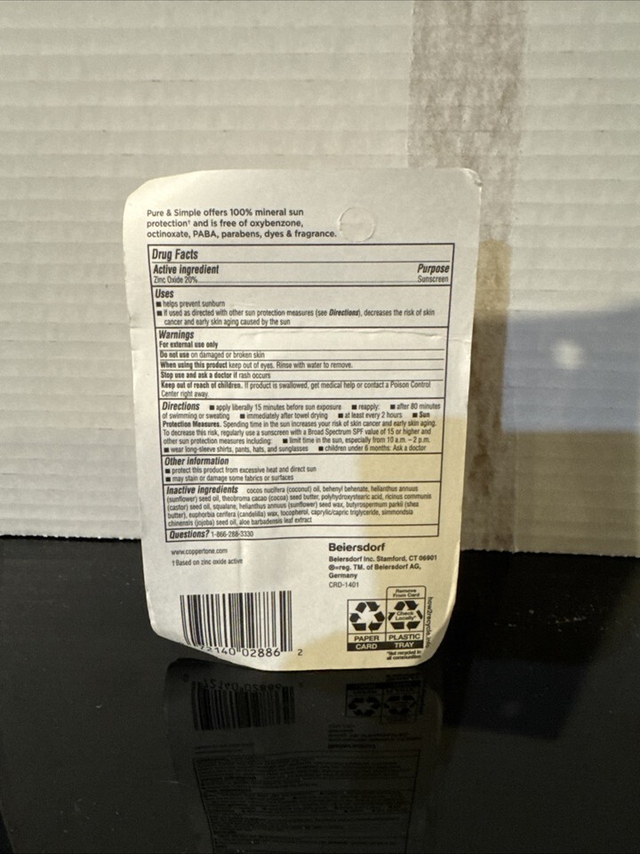 Coppertone Pure Simple Baby Cocoa Butter Mineral Sunscreen Stick SPF 50 New.