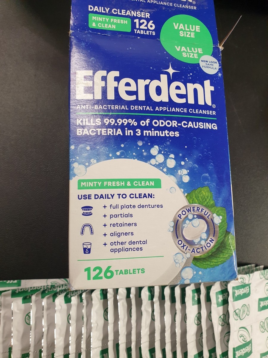 Efferdent Anti-Bacterial Dental Appliance Cleanser 126 Tablets Minty Fresh Clean