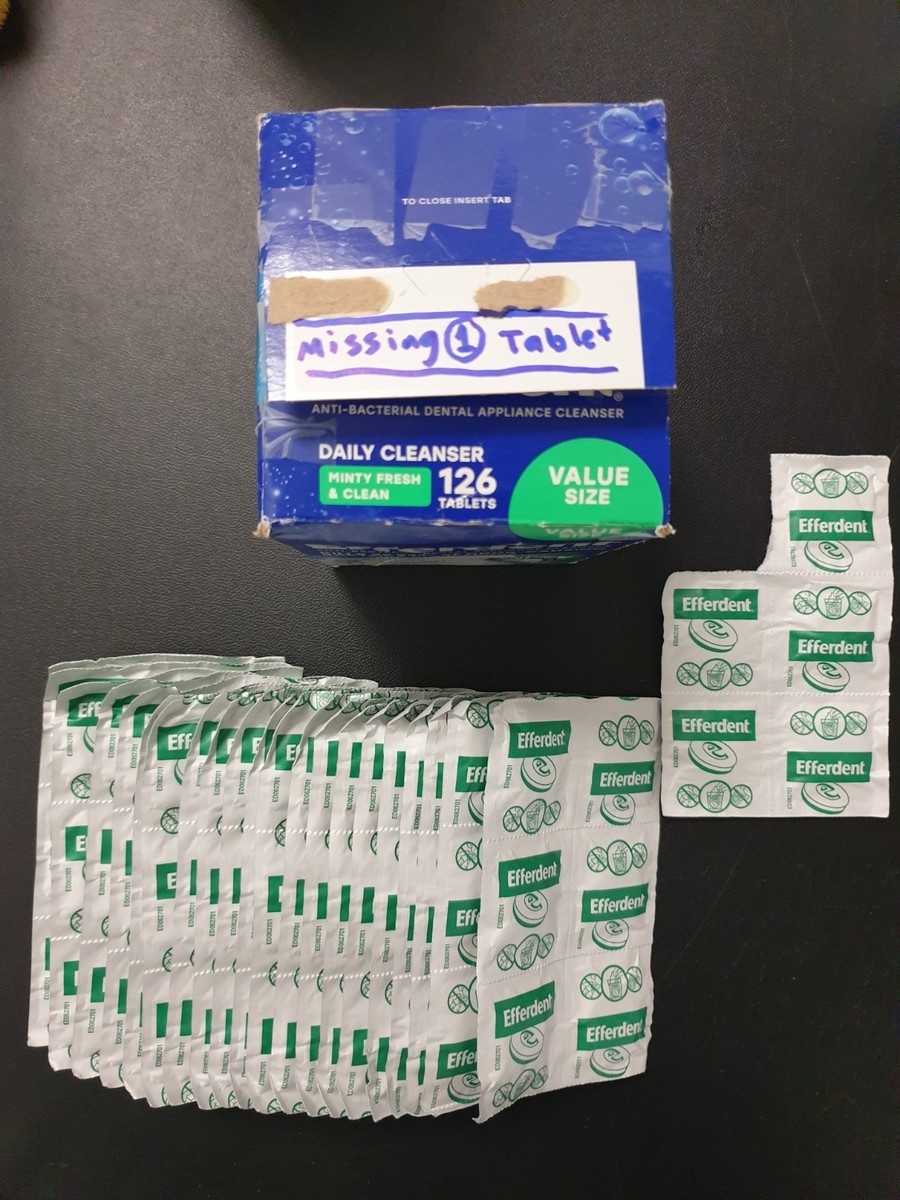 Efferdent Anti-Bacterial Dental Appliance Cleanser 377 Tablets Minty Fresh Clean /3-Pack (one pack missing one tablet)