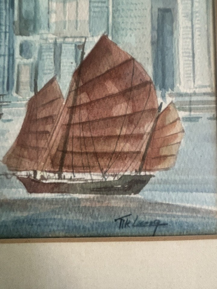 Vintage Art By Tik Ling Hong Kong Junk Boat and similar items