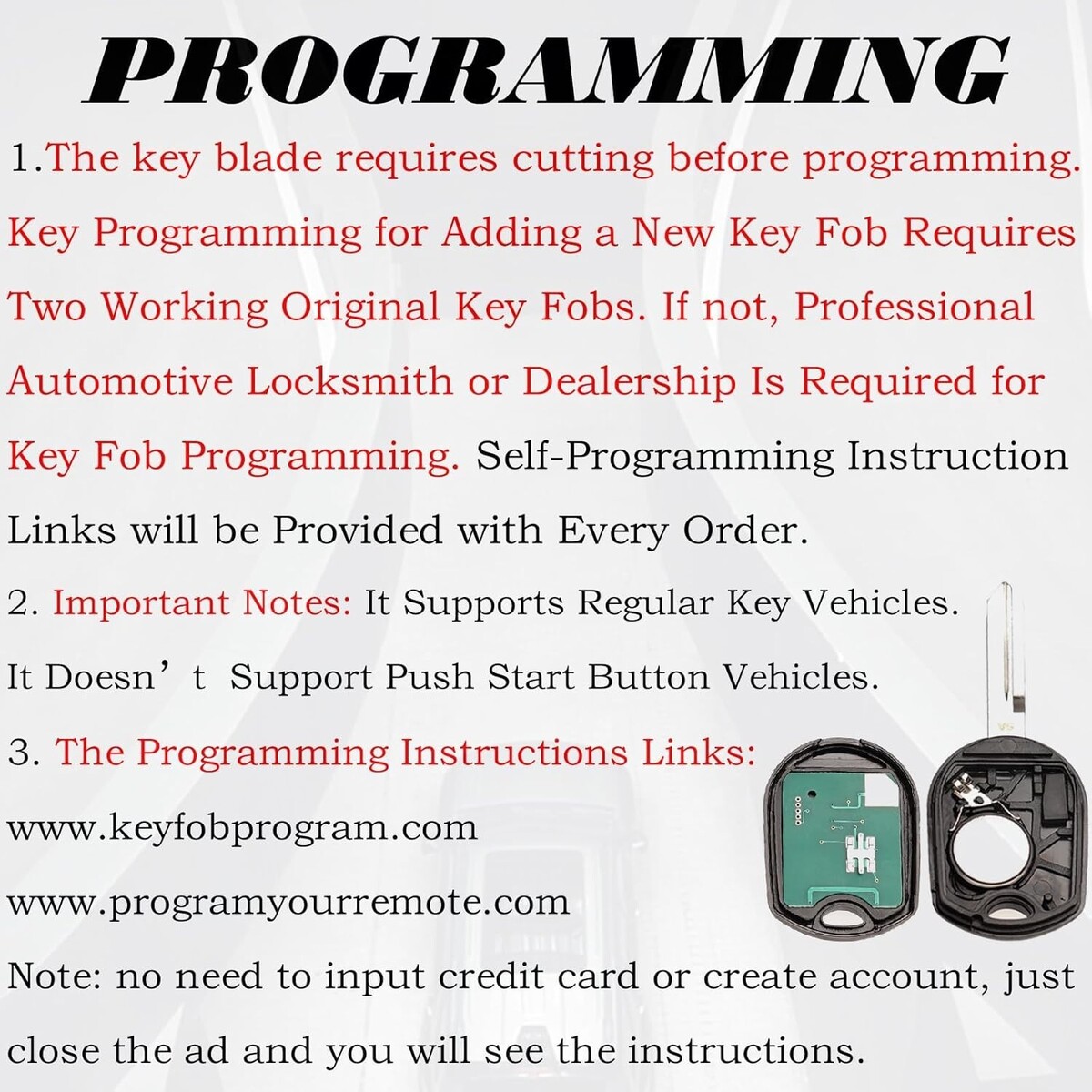 PROGRAMMING: The key blade requires cutting before programming. Key Programming for Adding a New Key Fob Requires Two Working Original Key Fobs. If You Don?t Have Two Working Key Fobs, Professional Automotive Locksmith or Dealership Is Required for Key Fob Programming. Self-Programming Instruction Links will be Provided with Every Order