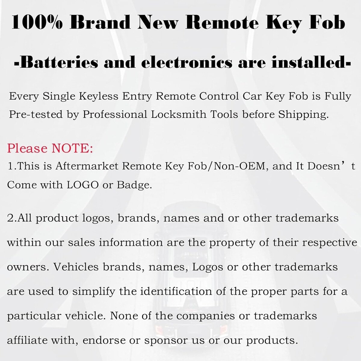 COMPATIBLE WITH FCC ID: CWTWB1U793 / OUC6000022. For Full Compatible List, Please Check Our Product Description and Vehicle Fitment Tool. Each Car Key Fob Replacement Comes with Batteries and Electronics, It Is Fully Installed and Is Pre-Tested to