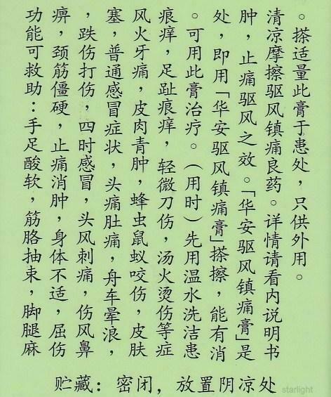 . In case of fibrositis, neuralgia and similar conditions, aches and pains, rheumatic pains, sprains, bruises, cramps, muscle stiffness, apply the balm generously on the affected part, rub gently and massage with some pressure to allow its deep and penetrating action to bring relief.