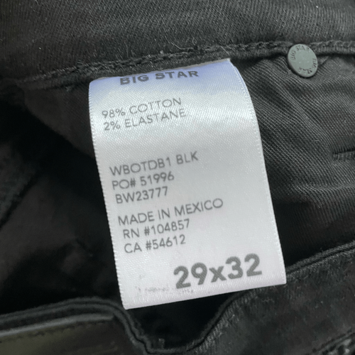 New with tags, black Big Star B Type 03 Bootcut jeans in Cotton and elastane blend. Button and zip fly closure. Laying flat measures 14.5 inches straight across the waist within 11 inch rise and 33 inch inseam. $98 please note the tag size is 29 x 32 but these do measure at a 33 inch inseam so I?m assuming they?re expecting some shrinkage when washed.