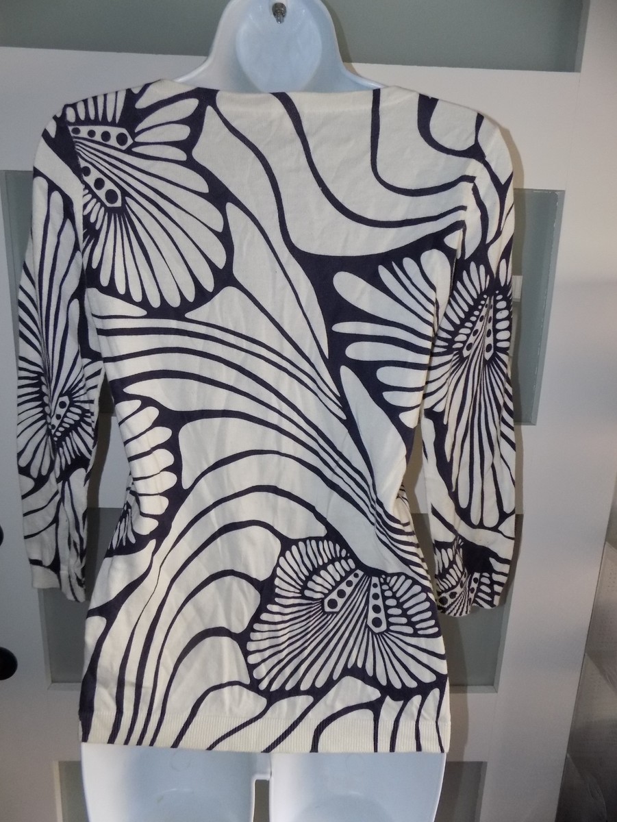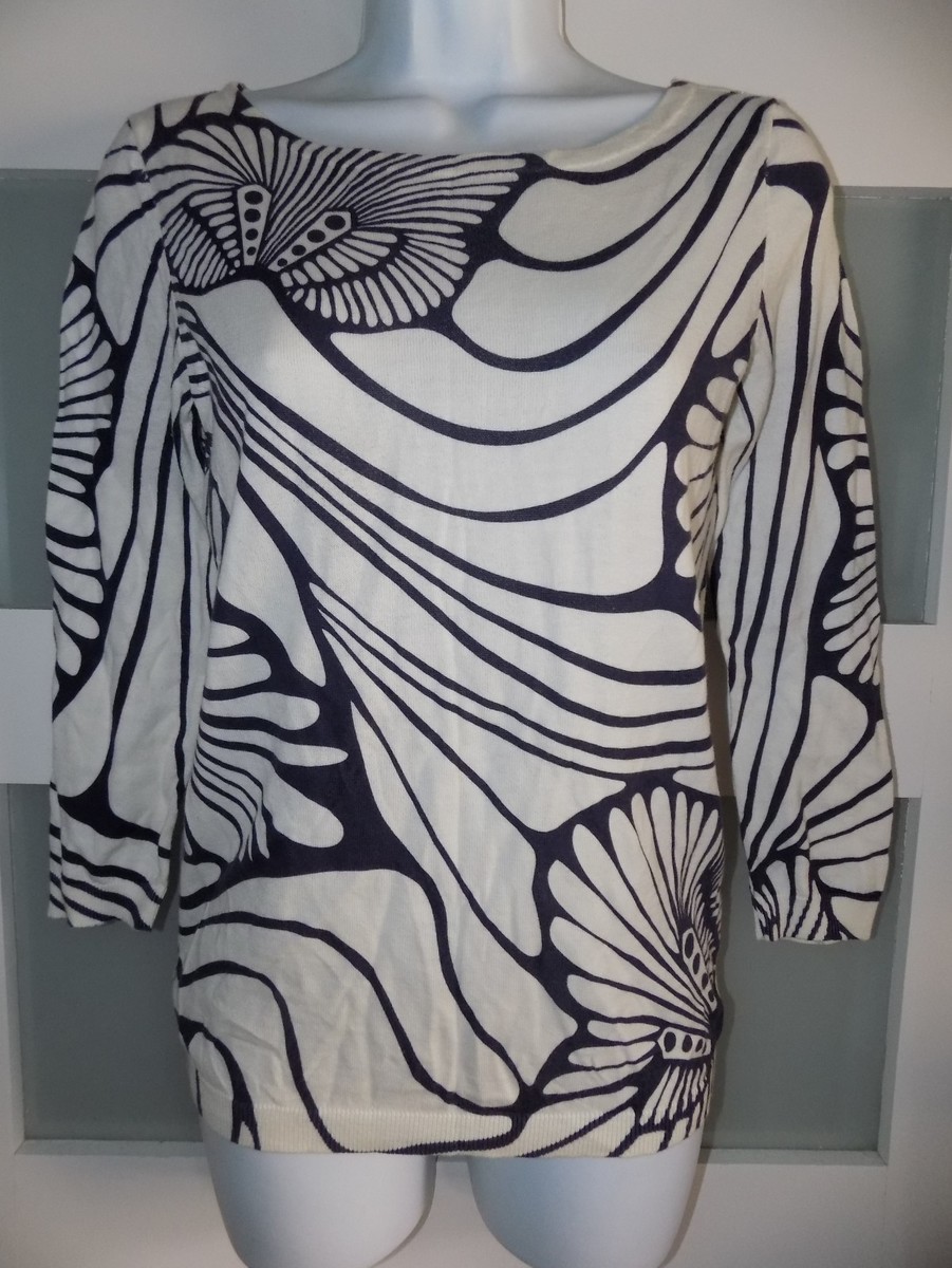 J.CREW WHITE/ BLUE DESIGN 3/4 SLEEVE LIGHTWEIGHT SWEATER SIZE S WOMEN'S