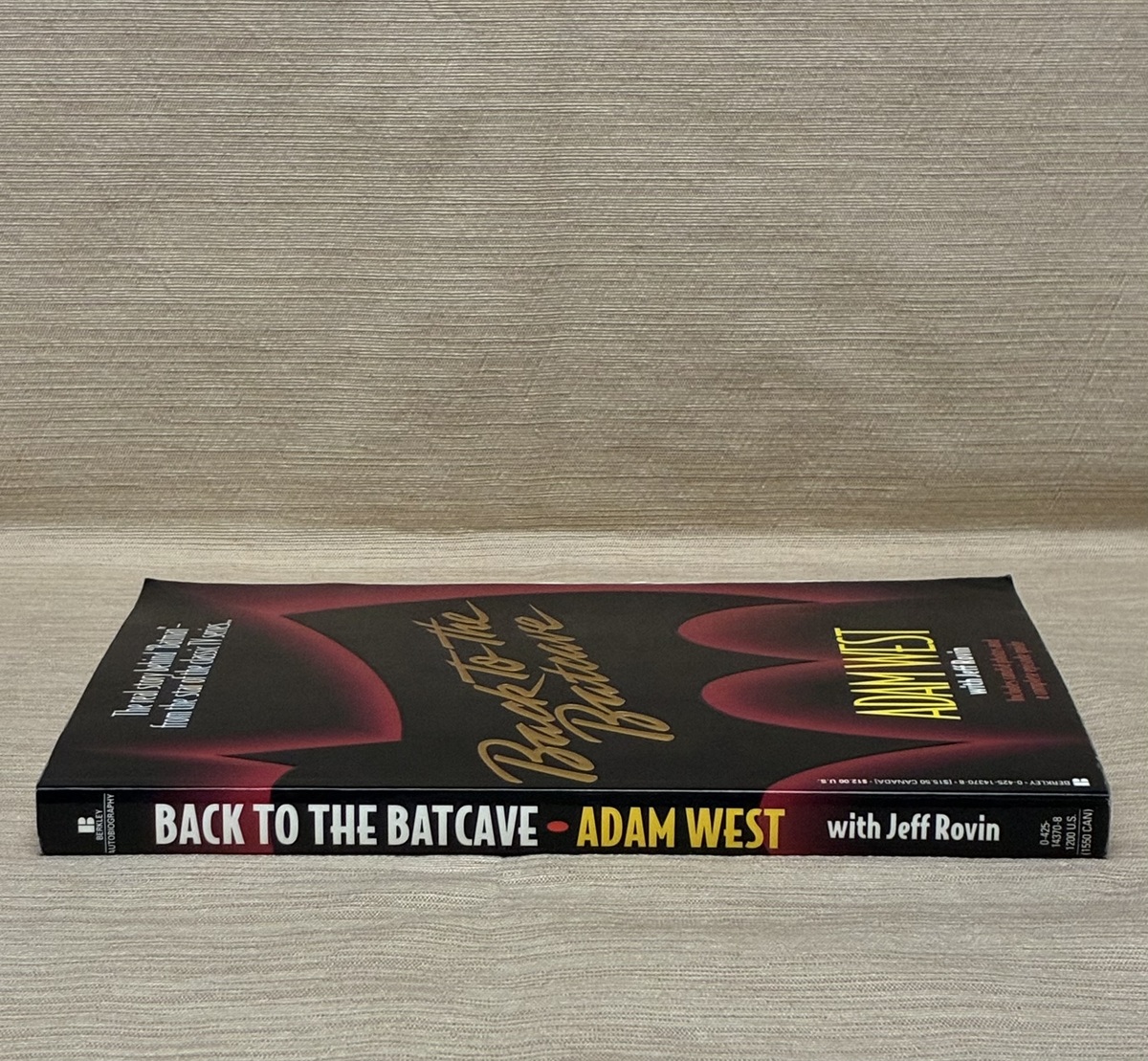 This is a signed first edition of Back to the Batcave by Adam West with Jeff Rovin, autographed by Adam West on the title page with an inscription "To Todd". It is a 1994 Berkley trade paperback. "Adam West, star of the classic 'Batman' television series, gives a behind-the-scenes account of what really went on when the cameras stopped rolling." Includes candid photos and a complete episode guide. Book is in good condition, a little light wear to the covers but nothing noteworthy. Pages are all clean and intact, binding is tight. Very nice for a Batman fan. Asking $65.00 obo. Everything I have listed for sale is "or best offer", so feel free to make an offer.