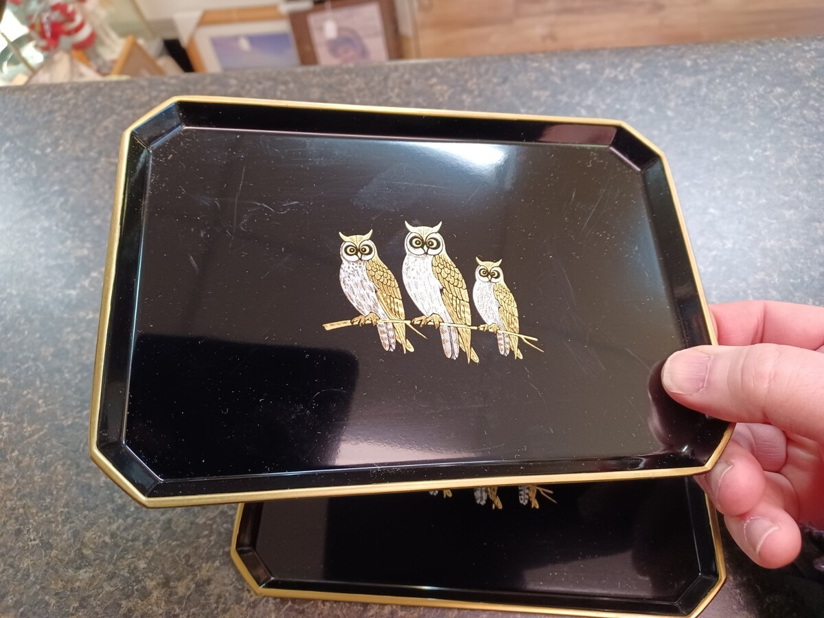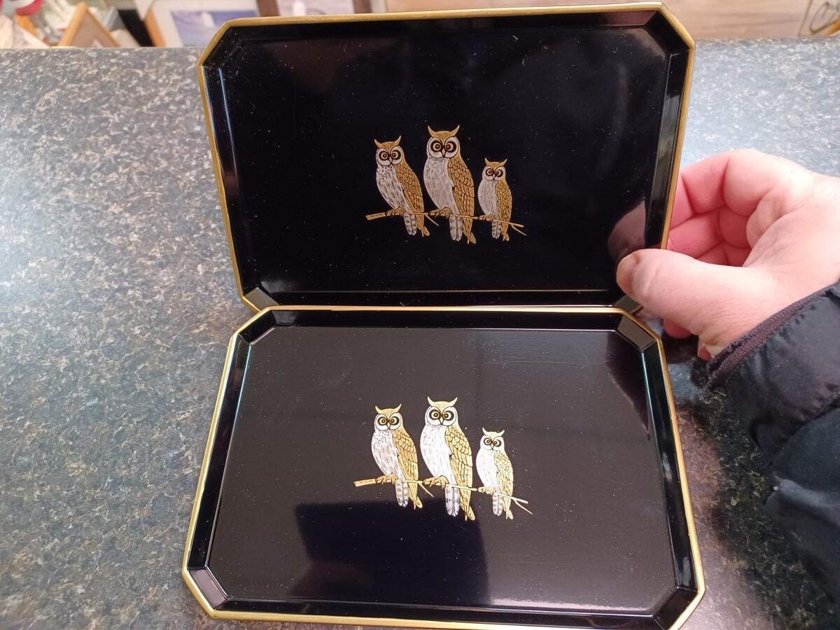 Otagiri Lacquerware Black Trays Owls Japan and similar items