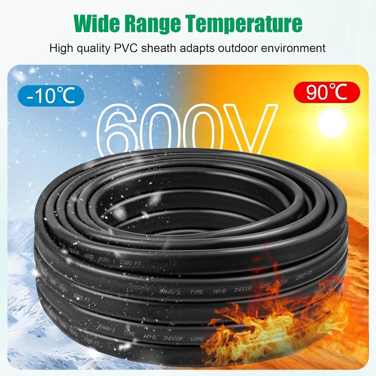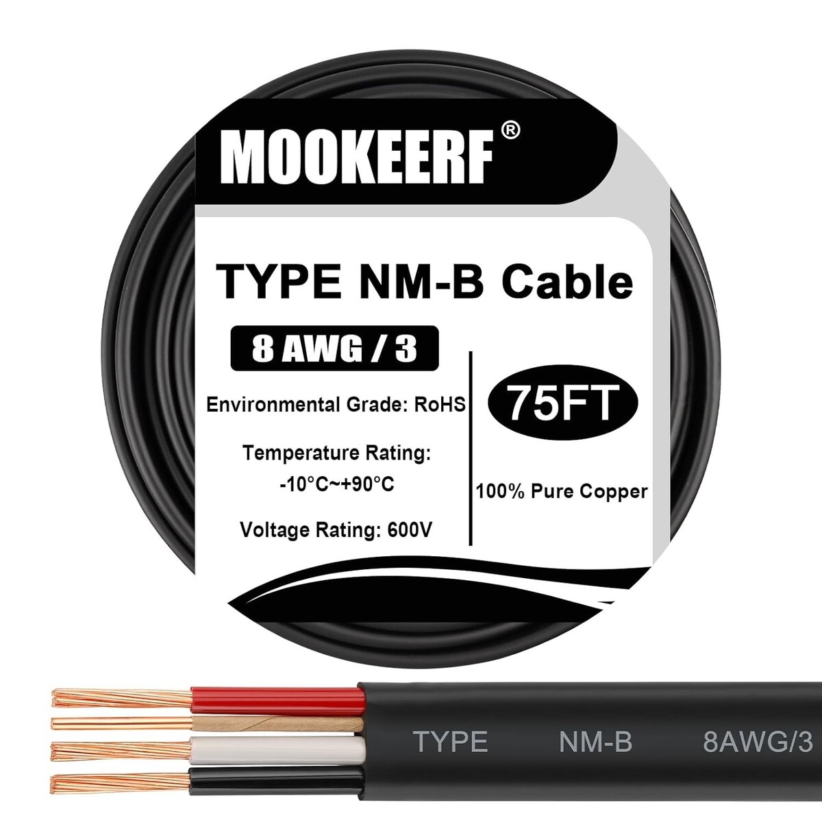 [Essential for US Residential Wiring (600V Rated)]: Type NM-B cable is the standard choice for residential branch circuit wiring in the USA. Rated for 600V, it's designed for dry or damp locations (not for direct burial or exposed outdoors) in 120/240V home power systems, aligning with typical US home wiring codes.
