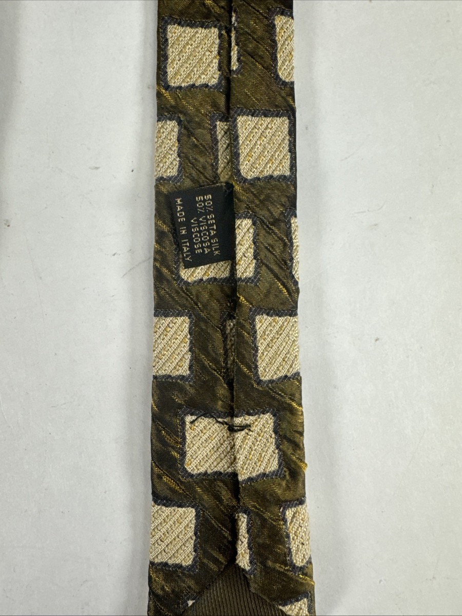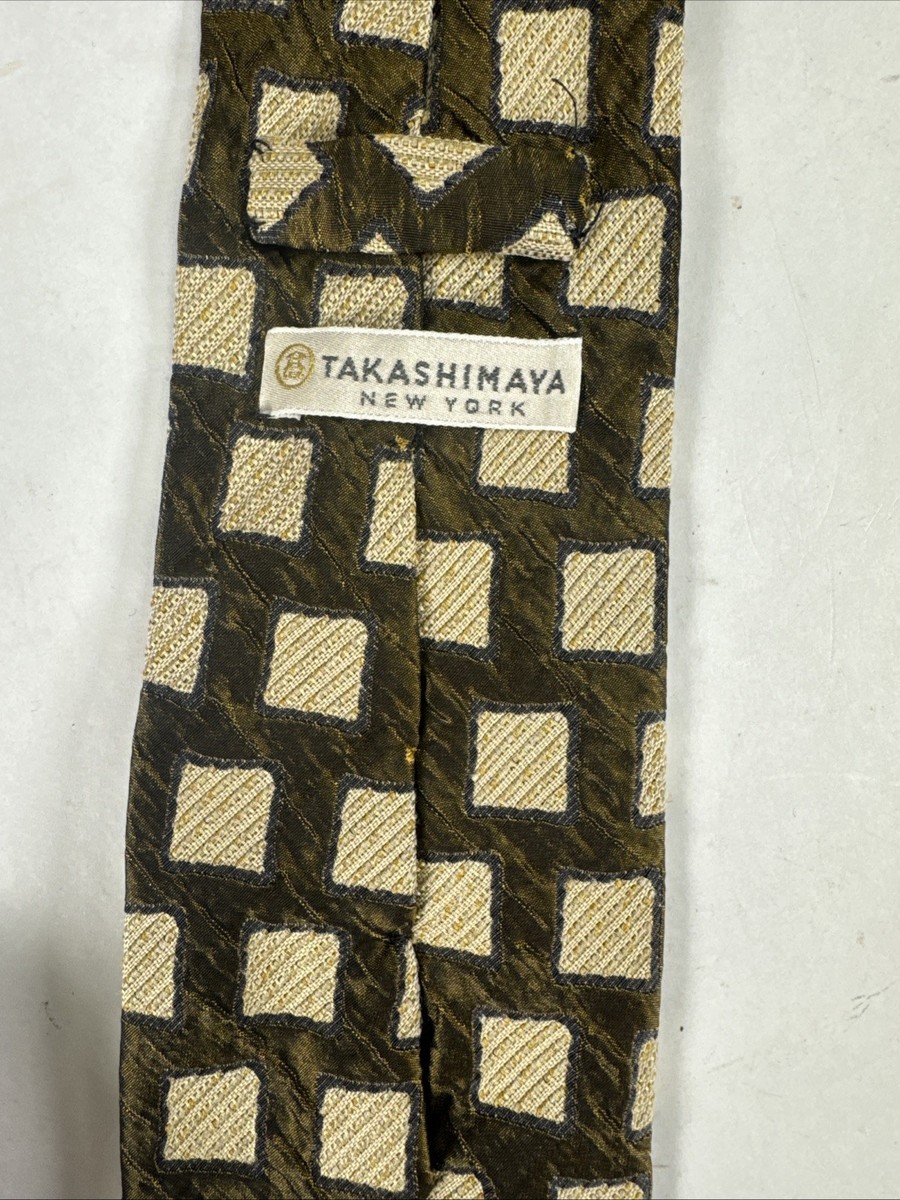 Takashimaya New York Silk Tie Necktie Italy Designer Square Brown And Beige